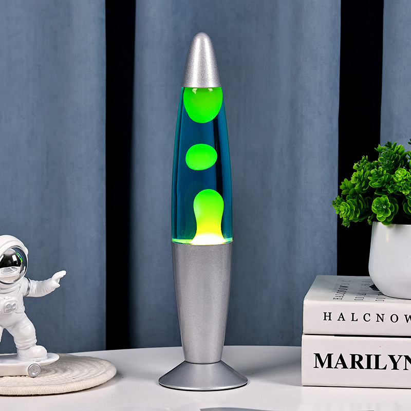 13-palčna modra originalna lava svetilka, vendar izraz življenjskega sloga. Ob koncu napornega dneva ga prižgite in opazujte, kako zelena voščena kroglica počasi lebdi v modri tekočini, kot da bi se čas upočasnil. V tem trenutku svetu ne ostane nič drugega kot mir in lepota.