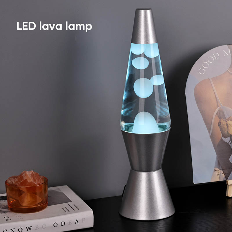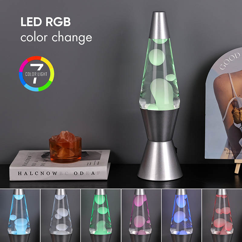 15-palčna RGB LED lava svetilka ima 7 menjav barv na dnu. barva je bela z lavo.
