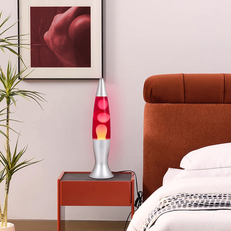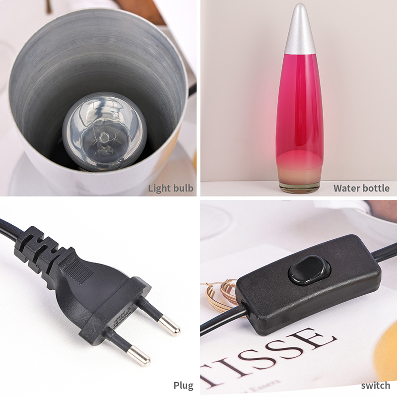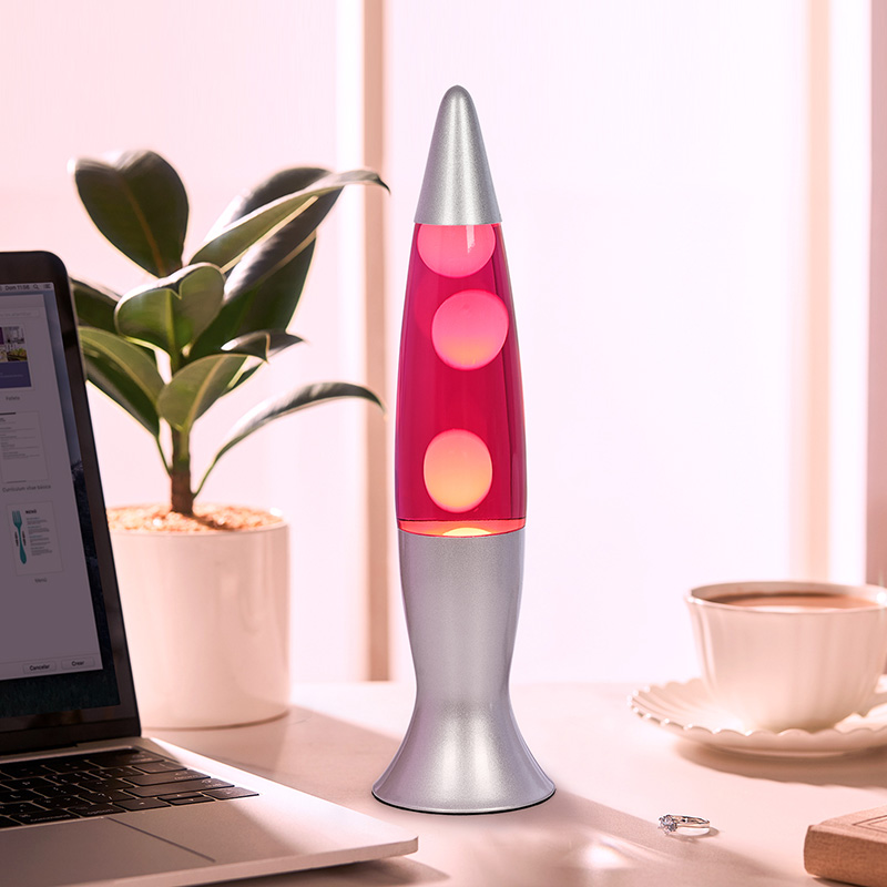 16-palčna siva lava svetilka je visoko vstavljena v napajalni vtič. vijolična Vijolična aluminijasta lupina, vijoličen vosek, ko sveti, čisto vijolična voščena svetilka.