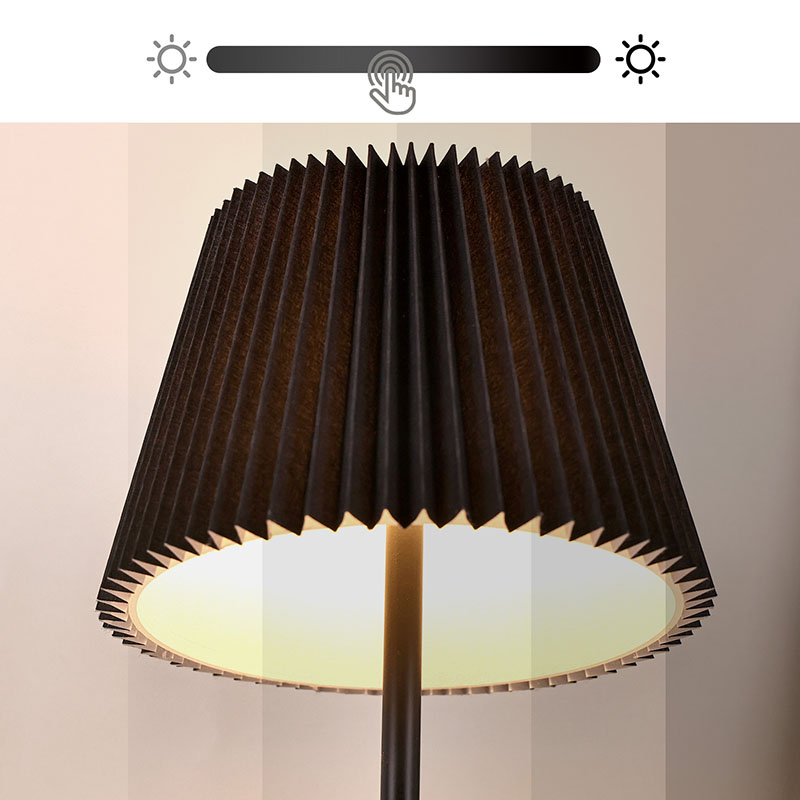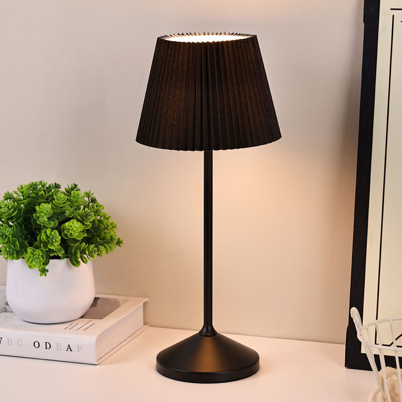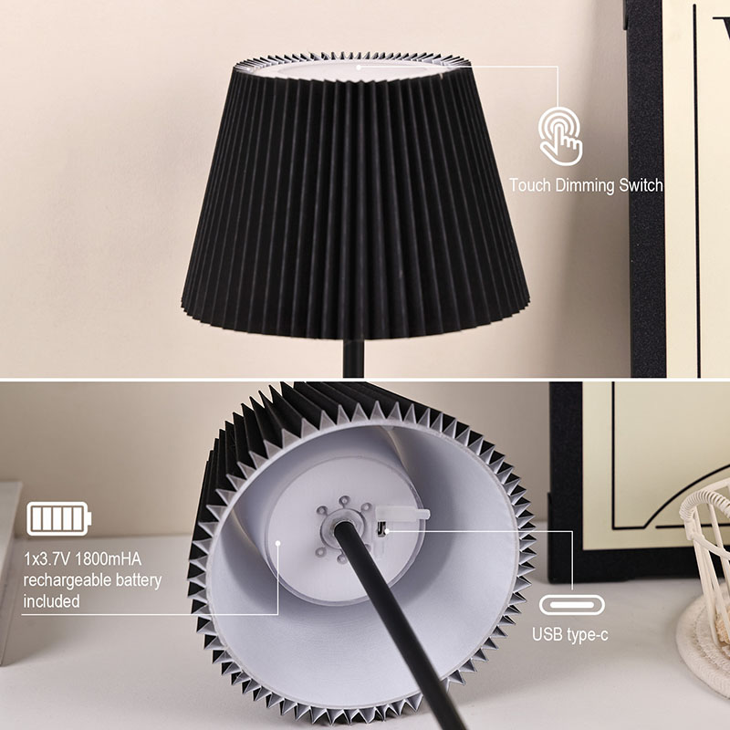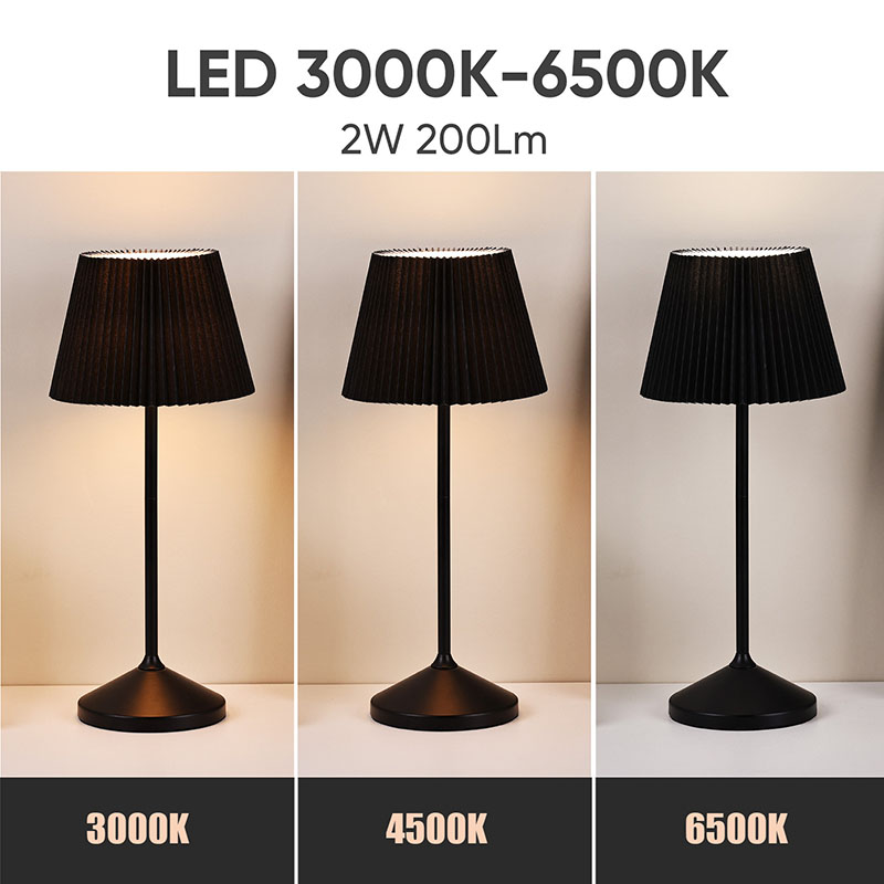 Črna Led namizna svetilka s senčnikom iz blaga je opremljena s tremi stopnjami zatemnitvene funkcije, ki lahko zadovolji vaše raznolike potrebe v različnih scenarijih. Ko želite ustvariti mirno in pomirjujoče spalno vzdušje, jo le nežno nastavite na najnižjo stopnjo in mehka topla svetloba bo kot svetla luna oddajala spokojen sij in vas spremljala v miren spanec Črna Led namizna svetilka s senčnikom iz tkanine ima tudi vgrajeno baterijo, ki s premišljenim dizajnom močno poveča njeno udobje uporabe