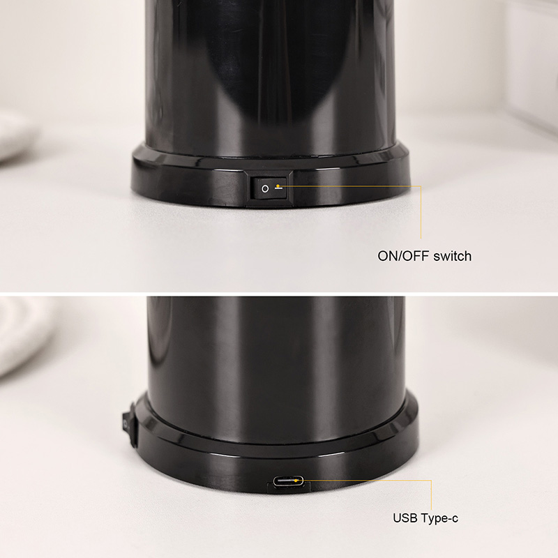 Svetilka, oblikovana z elegantno črno zunanjostjo, se ponaša z minimalističnim, a elegantnim videzom, zaradi česar je idealen poudarek za spalnice, dnevne sobe, pisarne ali celo kot edinstveno darilo. Sijajni črni podstavek in pokrov ne zagotavljata le osupljivega kontrasta z živahnimi barvami v notranjosti, temveč zagotavljata tudi vzdržljivost