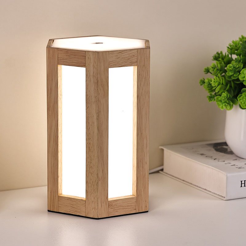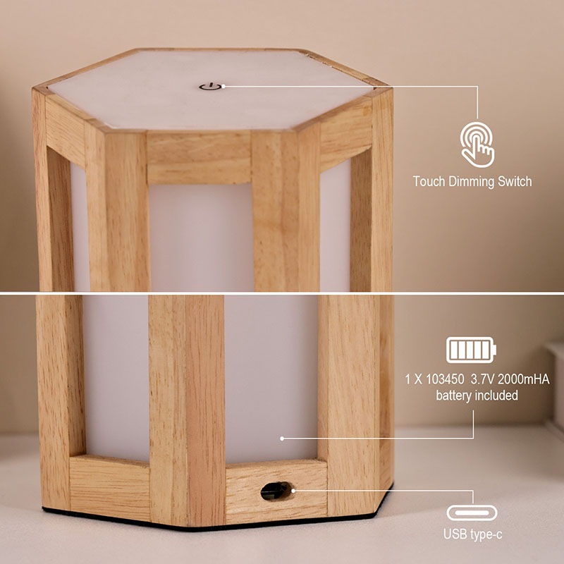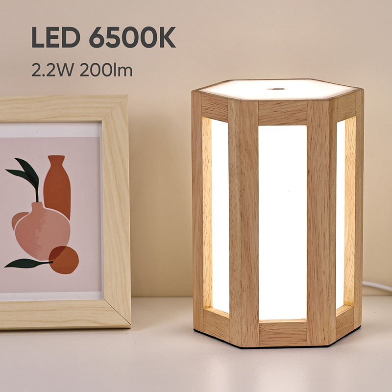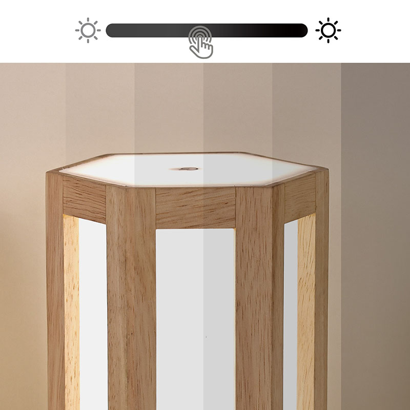 Ta lesena in plastična nočna lučka z možnostjo zatemnitve ni le praktično orodje za osvetljevanje, ampak tudi izvrsten okras. Brezžično led namizno svetilko z baterijo lahko postavite na nočno omarico, da vam bo v družbi