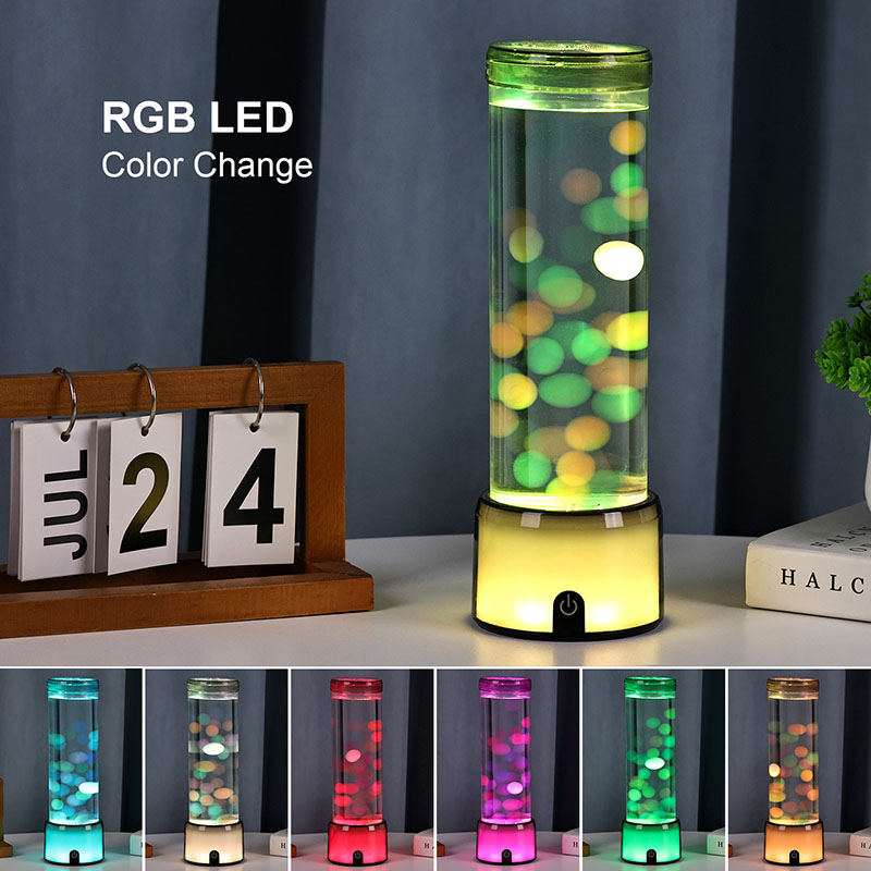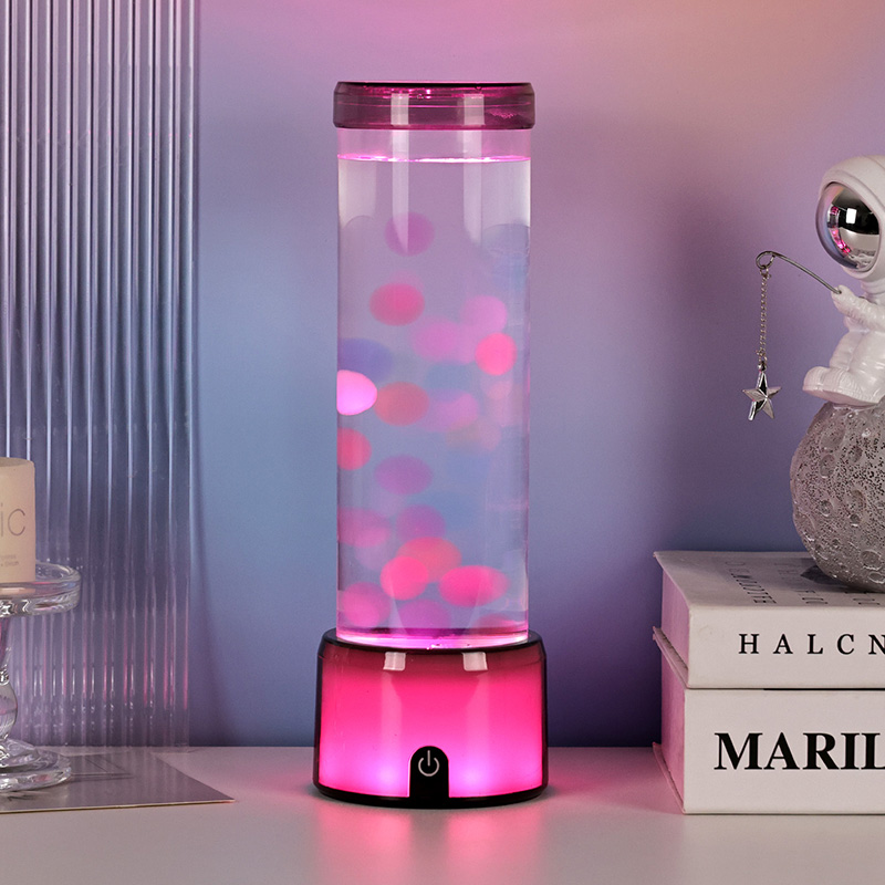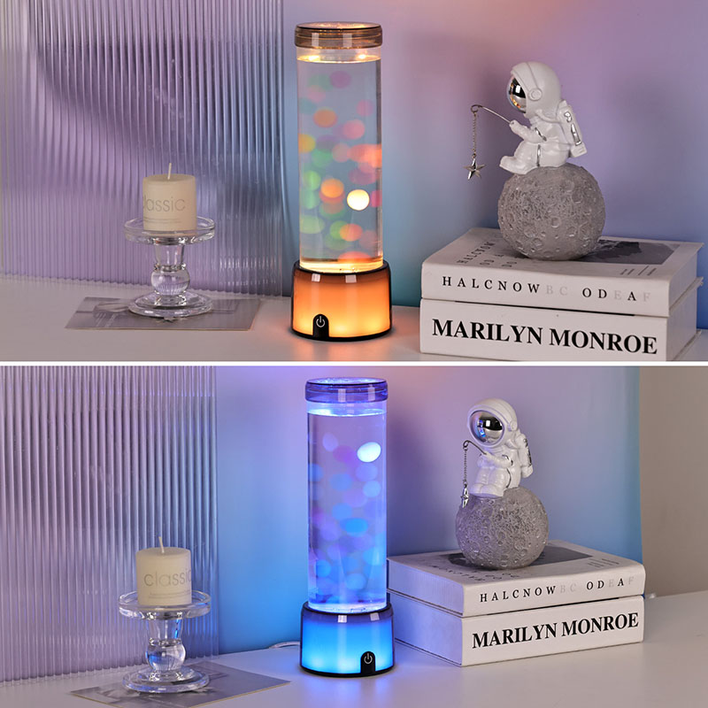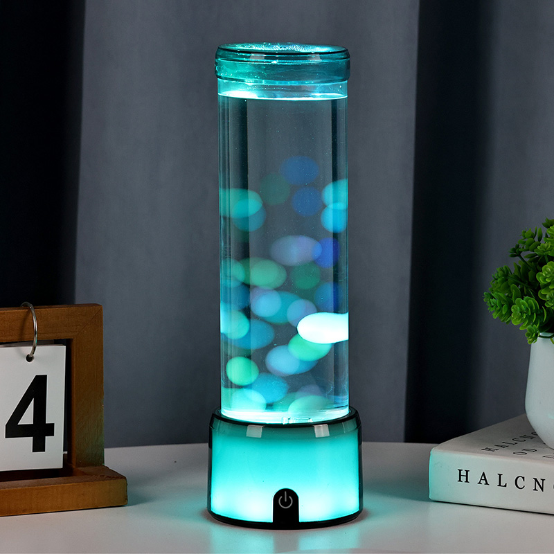 Ta svetilka, izdelana s pozornostjo do detajlov, posnema videz pravega akvarija s svojim prozornim cilindričnim ohišjem, napolnjenim s prozorno tekočino in svetlečimi figurami meduz, ki elegantno lebdijo v notranjosti. Mehak sij notranjega sistema LED izboljša gibanje meduze in ustvari osupljiv učinek bokeh, ki spominja na bioluminiscentna bitja, ki plujejo v globokih vodah. Ne glede na to, ali jo postavite na nočno omarico, pisalno mizo, polico ali mizo v dnevni sobi, ta svetilka vsakemu okolju doda pridih elegance in čudovitosti.