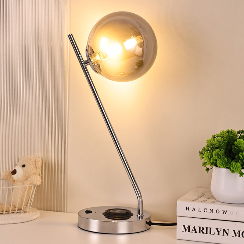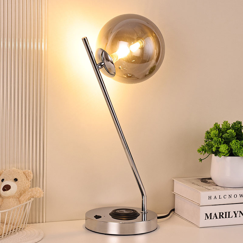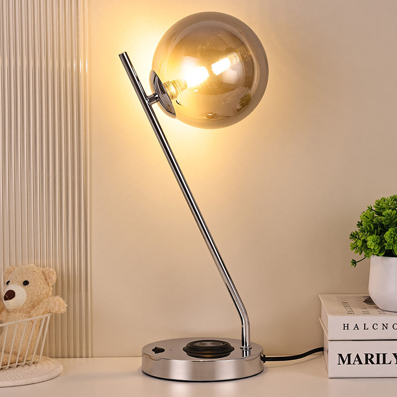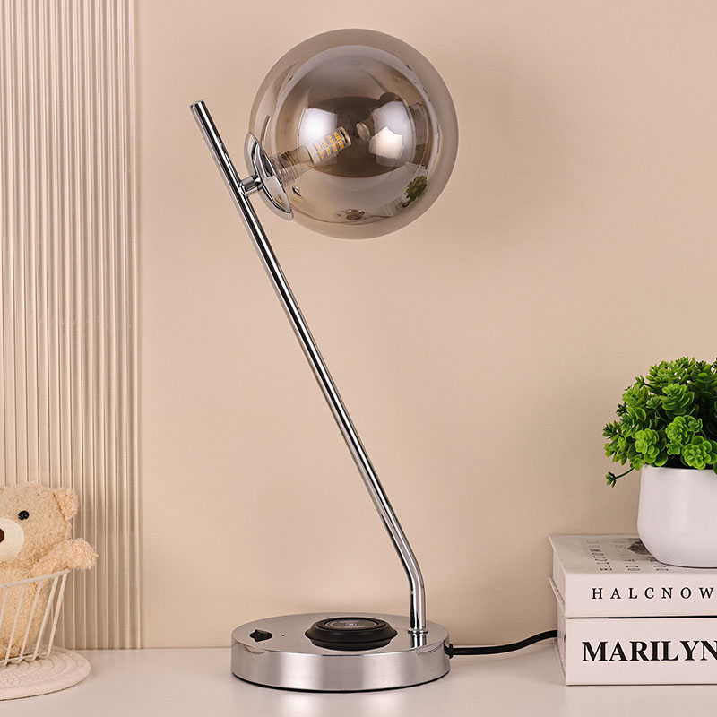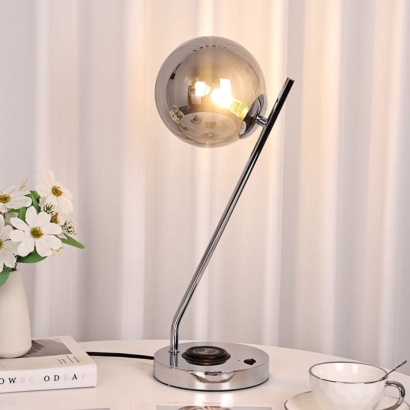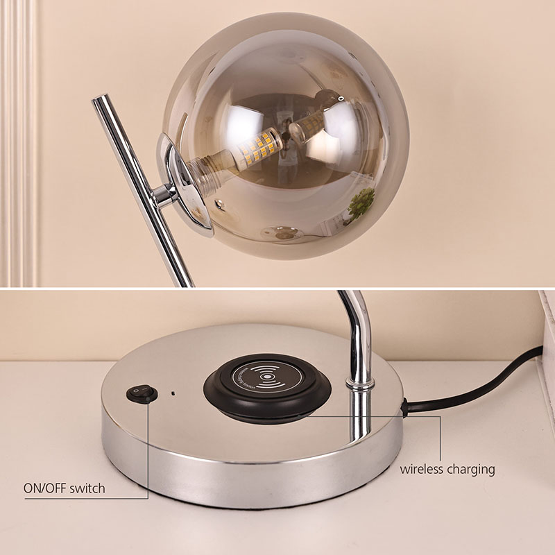 Namizna svetilka s kroglo iz temnega stekla z brezžičnim polnilnikom je narejena iz kovinske osnove in stekla。Stekleni pokrov ne daje le prozorne in čiste teksture svetilke, temveč tudi učinkovito razprši svetlobo, zaradi česar je svetloba mehkejša in bolj enotna. Kovinska podlaga je bila fino polirana in obdelana, z gladko in občutljivo površino, prijetno na dotik ter izžareva plemenito in elegantno vzdušje. Ne glede na to, ali jo postavite v spalnico, dnevno sobo ali delovno sobo, se lahko ta namizna svetilka popolnoma zlije z okoliškim okoljem in doda sodobno in umetniško vzdušje.