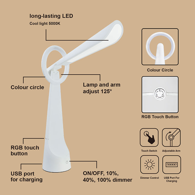 Na zadnji namizni svetilki je USB priključek za polnjenje