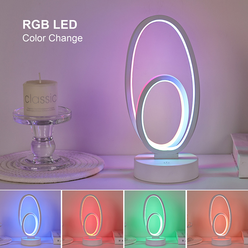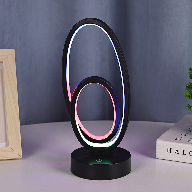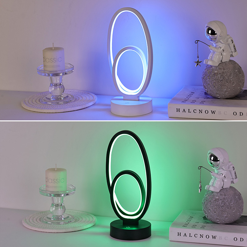 RGB namizna svetilka z dvojnim krožnim senčnikom je umetniški poudarek za domače prostore, ki vključuje varno nizkonapetostno napajanje z enosmernim tokom za stabilno in energetsko učinkovito delovanje ter zagotavlja varno uporabo. Primerno za različne scenarije, kot so dnevne sobe, otroške sobe, študijski prostori in spalnice