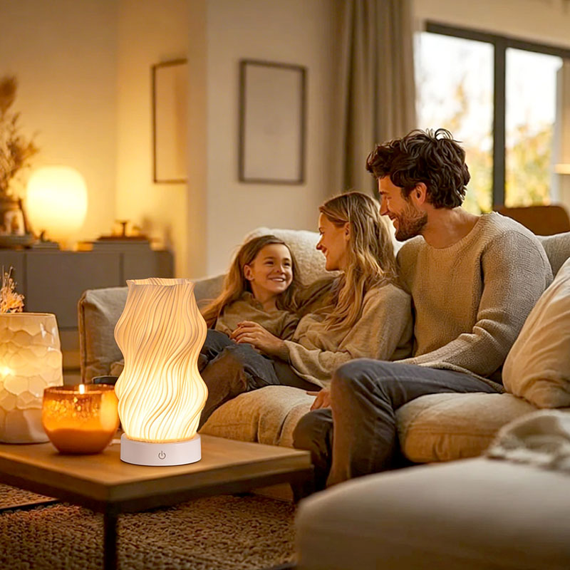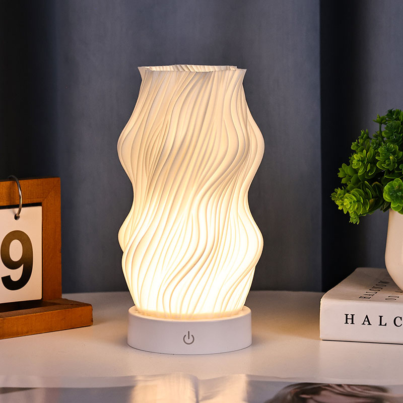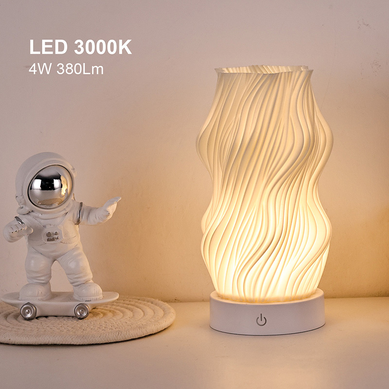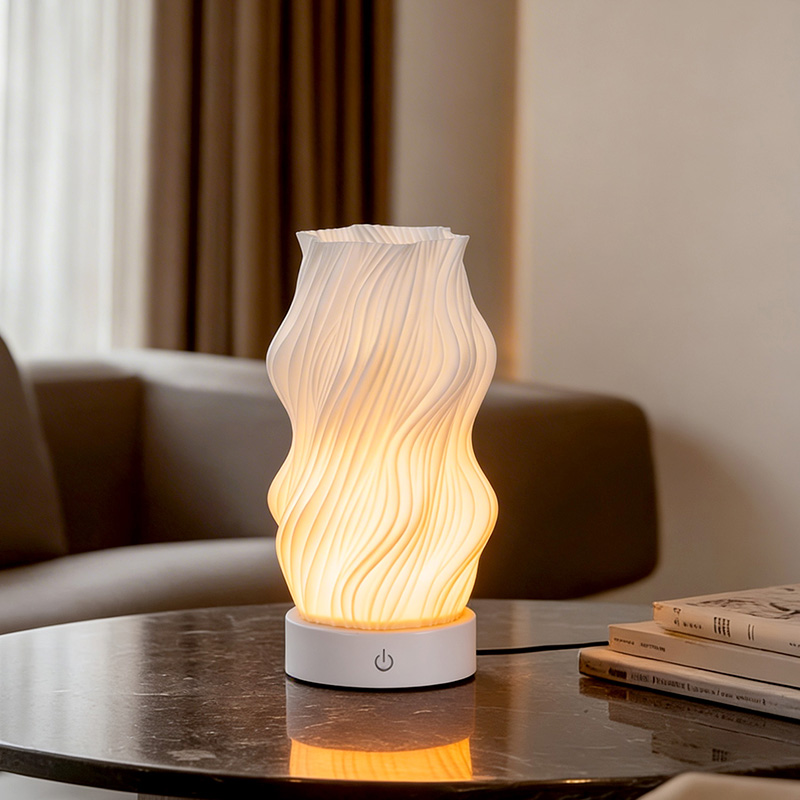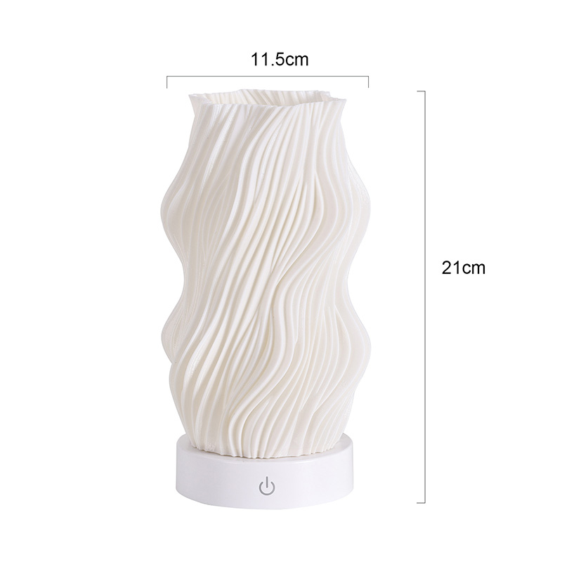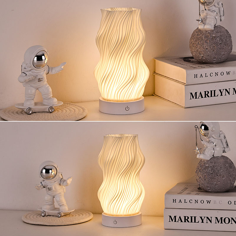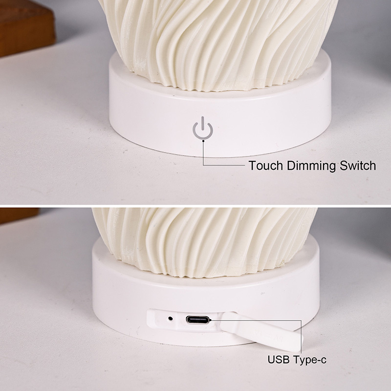 Ohišje namizne svetilke Flame Night Light, izdelano iz vrhunske plastike, je (kompaktno) in lahko. Ni samo topel na dotik, ampak ga je tudi enostavno čistiti in premikati. Minimalistična zasnova z valovito teksturo združuje umetniško lepoto s praktičnostjo in se zlahka zlije s katerim koli slogom domače dekoracije. Je popoln poudarek, ki prihrani prostor in vaši sobi doda pridih elegance.