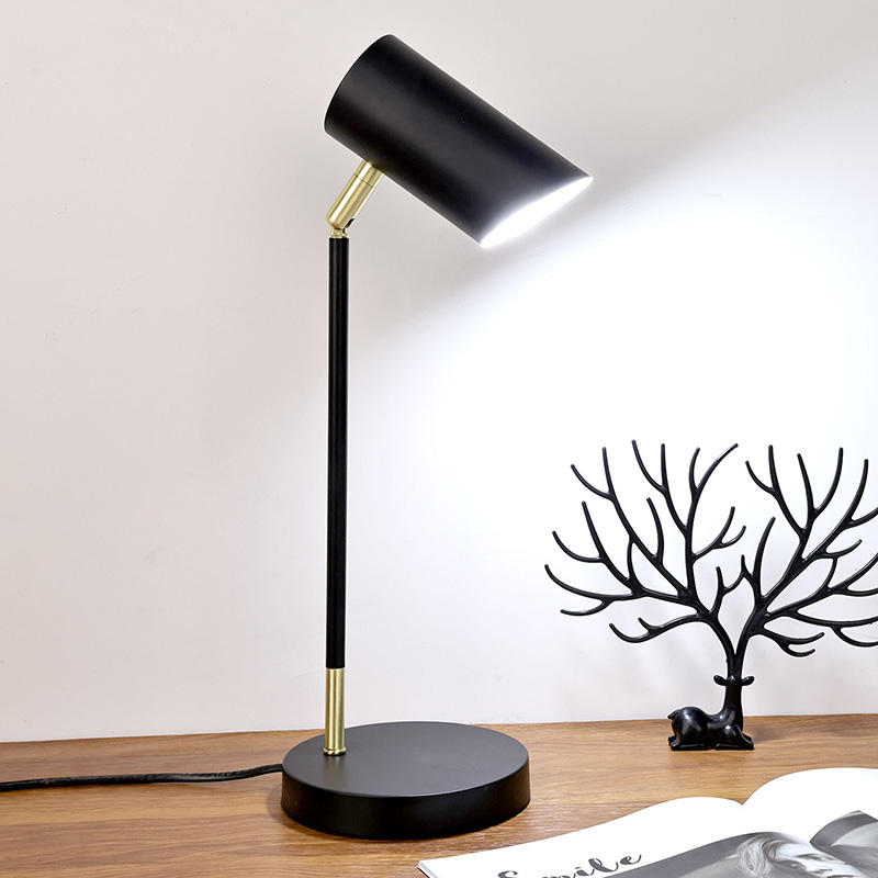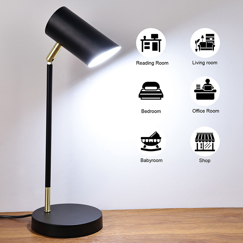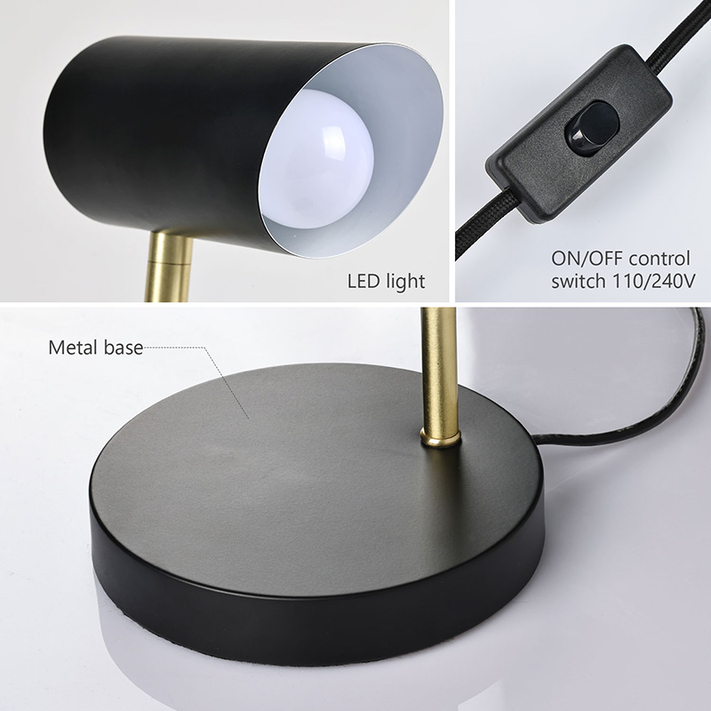 Zložljiva namizna svetilka je v glavnem sestavljena iz kovine, z naglavno svetilko, ki jo je mogoče zložiti iz različnih kotov. Črno ohišje svetilke kaže bolj tradicionalen slog
