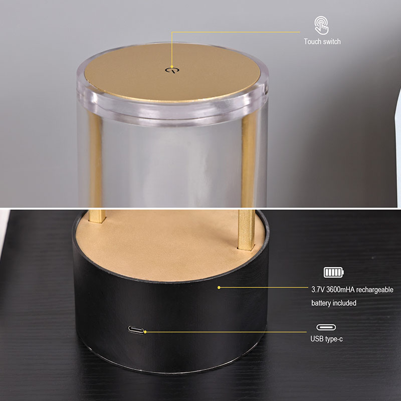 Na vrhu majhne namizne svetilke Lantern Style je stikalo za luči, občutljivo na dotik, s polnilno glavo tipa C na dnu. Zgornji del je sestavljen iz prozornega akrilnega pokrova, spodnji pa je kovinska osnova. Celotna krožna struktura omogoča premično razsvetljavo