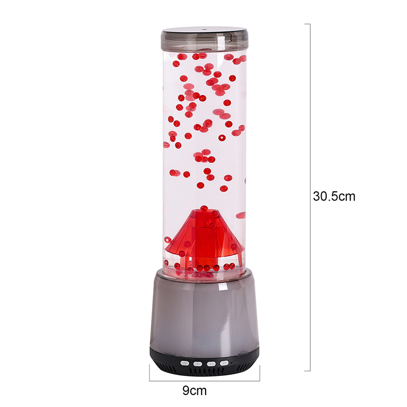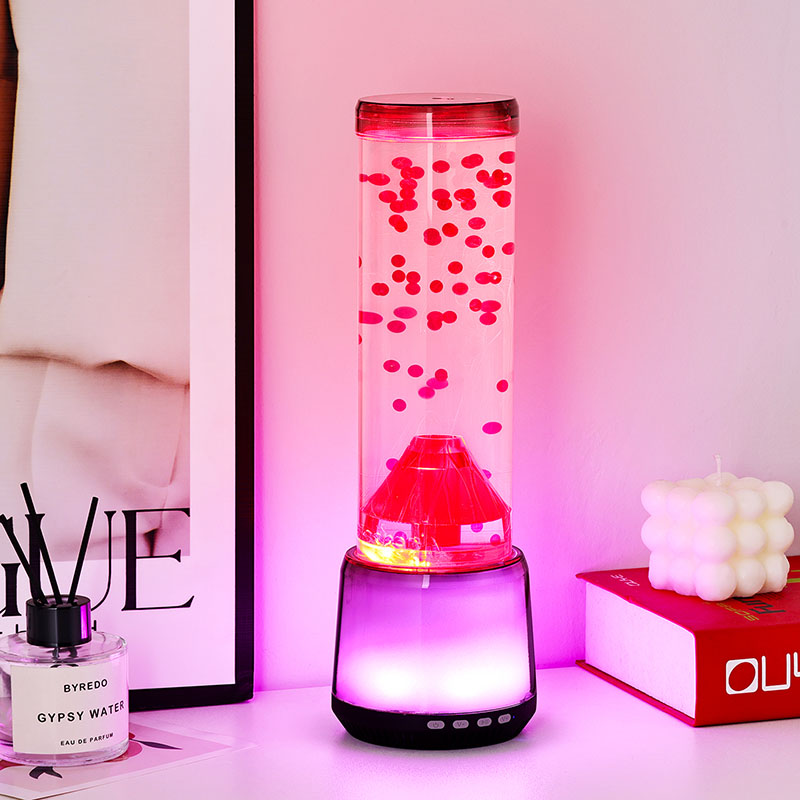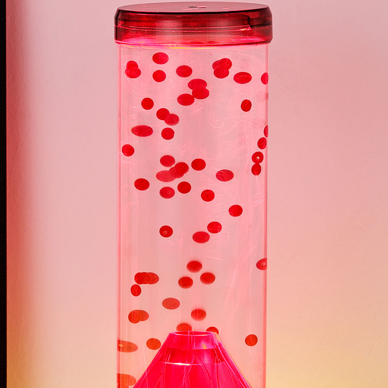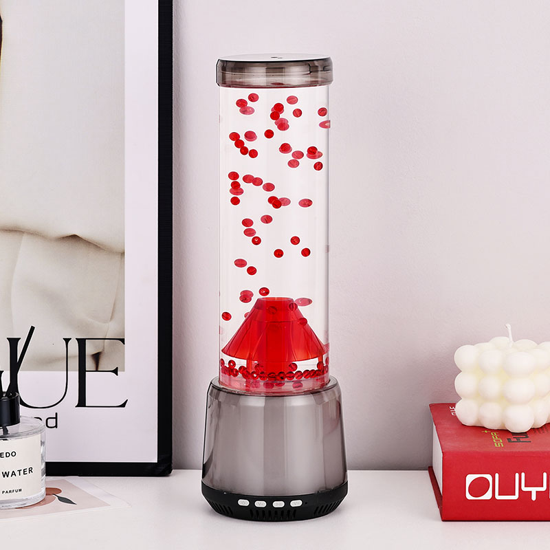 dinamika, kjer se rdeče obarvani mehurčki nenehno dvigajo in spuščajo ter posnemajo naravni tok staljene lave ali nežno premikanje meduz skozi oceanske tokove. Ta hipnotični učinek povzroči pomiritev