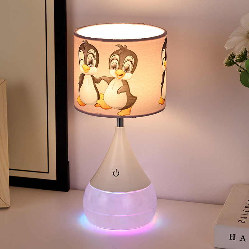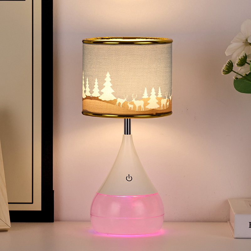 Led namizna svetilka z dizajnom senčnika iz račje tkanine je izdelana iz plastičnega škatlastega stekla, s poudarkom na ustvarjanju transparentnega in luksuznega dizajna. Senčnik je izdelan iz prozornega akrilnega materiala, z linearno zasnovo in prozornim zunanjim pokrovom. Svetloba ima lahko tople barve, sestavo bele svetlobe naravne barvne škatle in različne barve lahko prilagodijo intenzivnost svetlobe, kar bo zelo dobro. Dno je sestavljeno iz tekočine znotraj steklenice, tekoča svetloba pa je lahko sestavljena iz iluzijskih barv RGB.
