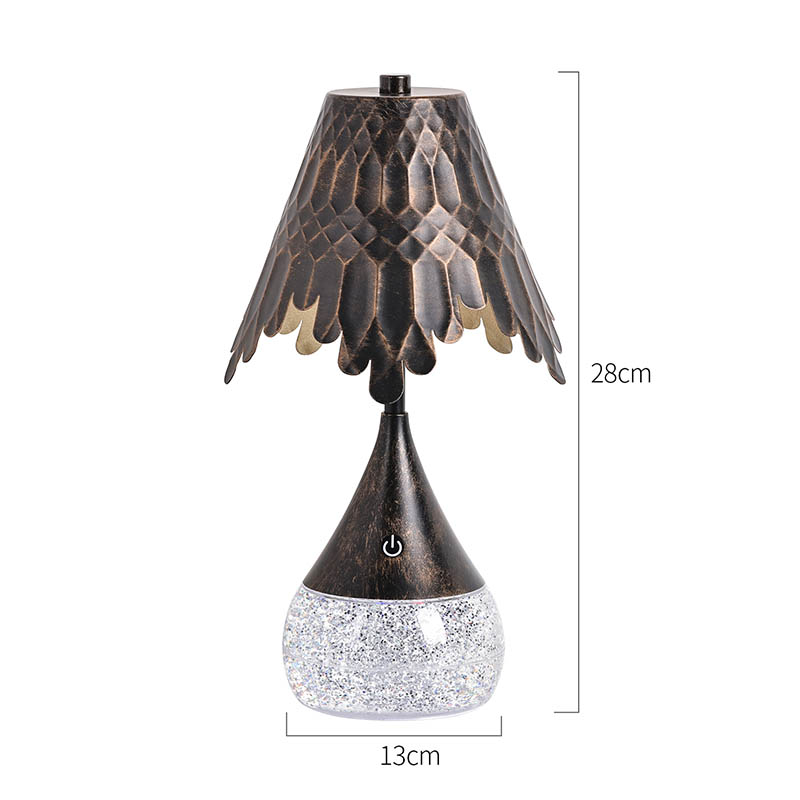 Jedro dizajna naše namizne svetilke je njen eleganten kovinski dežnik. Odtenek, izdelan iz kakovostnih, trpežnih kovin, kot sta aluminijasta zlitina ali nerjavno jeklo, senca zagotavlja eleganten, sodoben videz, hkrati pa zagotavlja stabilnost in dolgo življenjsko dobo. Struktura krovne barve omogoča široko in enakomerno porazdelitev svetlobe, zmanjšanje senc in bleščanja, kot nalašč za naloge, kot so branje, pisanje ali podrobno delo. Odtenek je nastavljiv, kar uporabnikom omogoča, da svetlobo natančno pokvarijo, kjer je potrebno, kar povečuje vsestranskost in udobje.