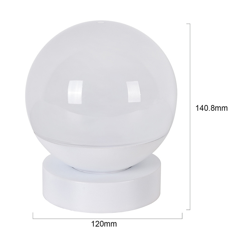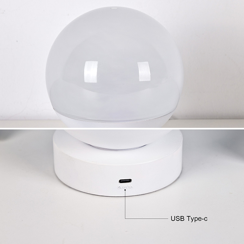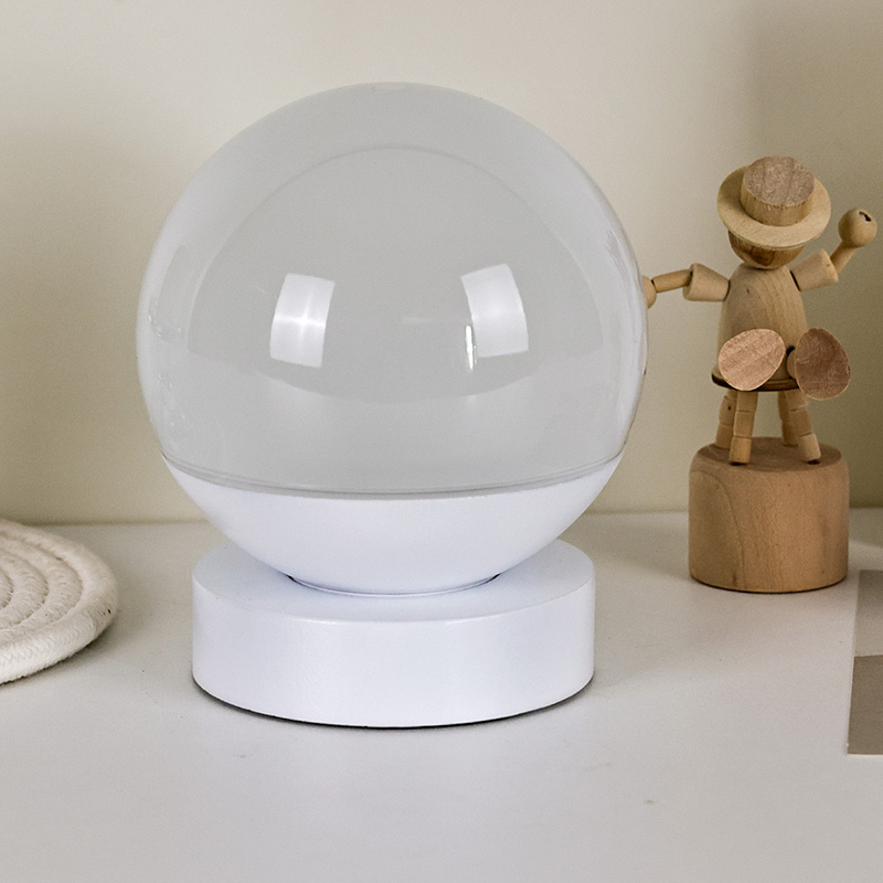 Celoten dizajn predstavlja zaobljeno kroglo, z zgornjo polovico iz prosojnega matiranega materiala, ki oddaja mehko, nežno svetlobo. Spodnja polovica je sestavljena iz bele podlage za stabilno oporo, s čistimi in gladkimi linijami. Njegova kompaktna velikost
