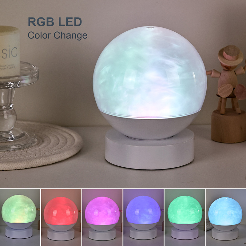Z uporabo napredne tehnologije LED svetlobne učinkovitosti v kombinaciji z notranjim posebnim optičnim dizajnom osvetlitev znotraj krogle ustvari dinamičen učinek, ki spominja na počasi tekoče oblake in meglo. Barve se neopazno spreminjajo