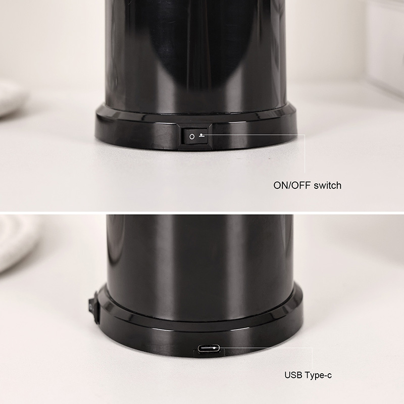 Ta visoka črna svetilka, izdelana iz visokokakovostne, trpežne plastike, ima robusten podstavek, ki preprečuje prevrnitev in zagotavlja stabilnost na mizah, policah ali nočnih omaricah. Prozorna osrednja cev je odporna na praske in enostavna za čiščenje ter ohranja jasnost skozi čas. Zgornji pokrov je varno zaprt, da prepreči puščanje, medtem ko so notranje komponente zaradi varnosti popolnoma zaprte.