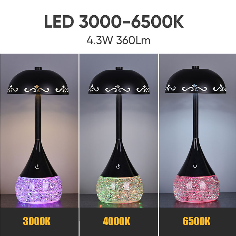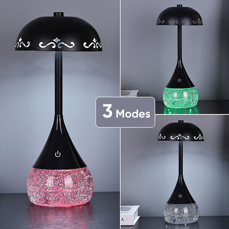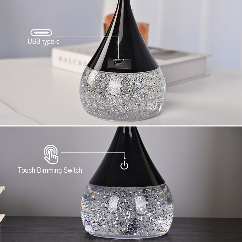 Znotraj podstavka v prozornem steklenici ima tekočino, ki se nepravilno premika in ustvarja privlačen vizualni učinek. Tekoča bazalna LED namizna svetilka z dežniško obliko cvetov ni navadna tekočina; Posebej je oblikovan tako, da ustvari očarljiv ples Shimmerja in vrtinčenja. Ko se tekočina premika, odraža svetlobo v nenehno spreminjajočem se vzorcu, kar ustvarja nenehno razvijajočo se vizualno izkušnjo.