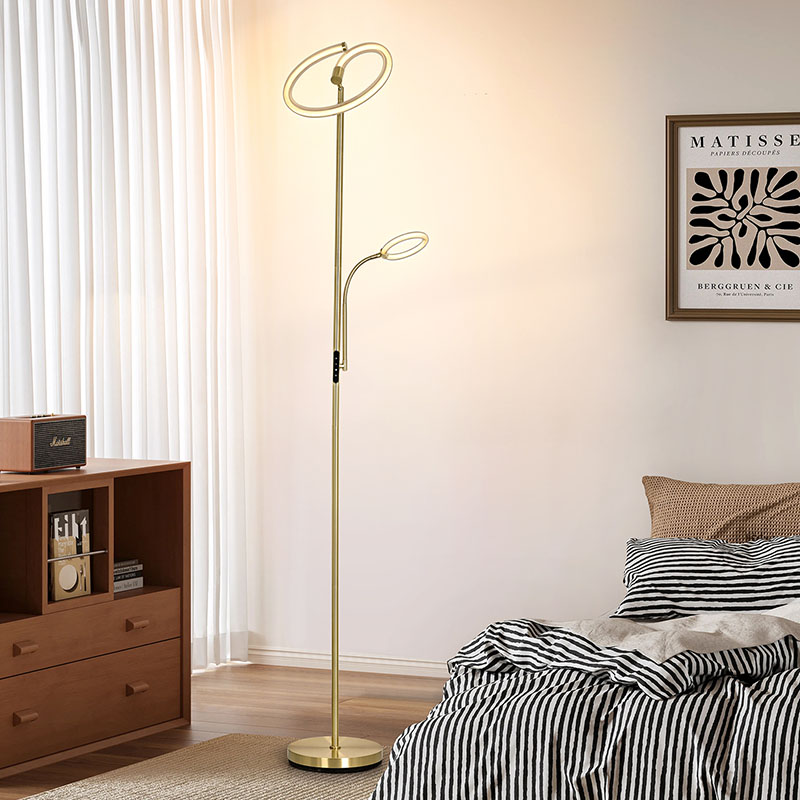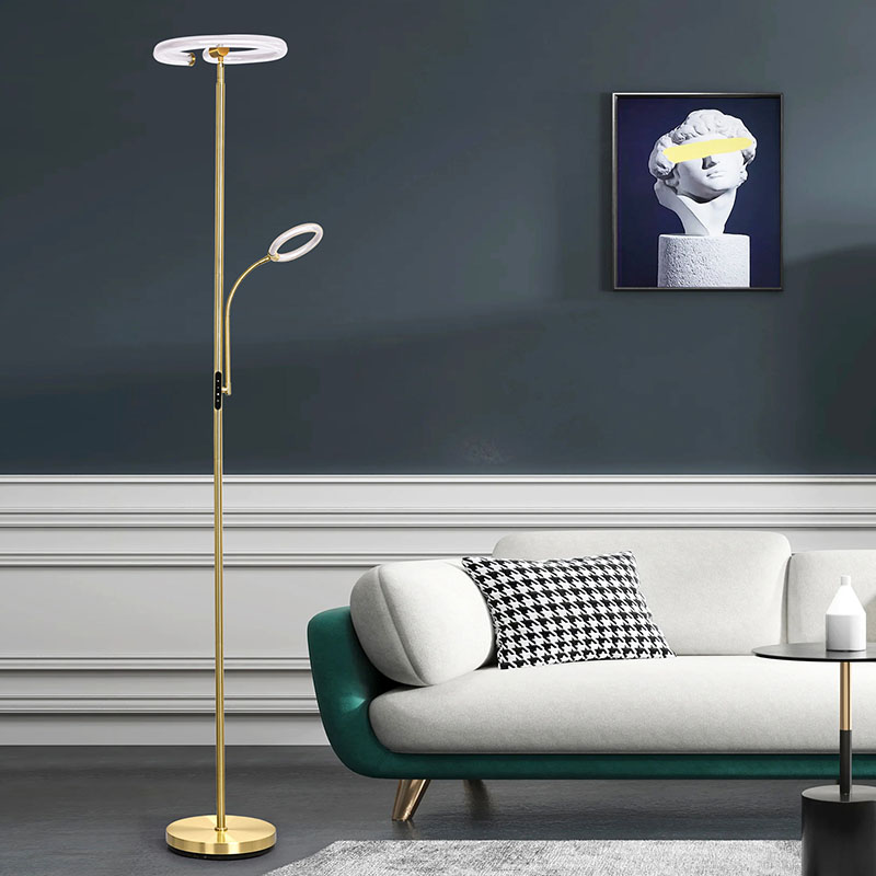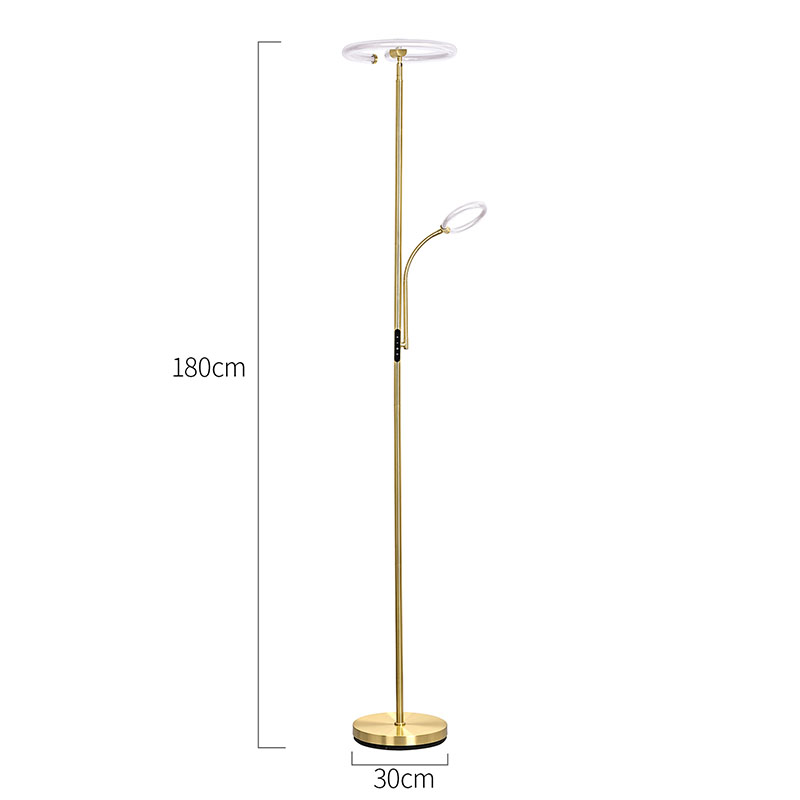 Luxury Gold led stoječa svetilka za dnevno sobo je izdelana iz visokokakovostnega zlatega kovinskega materiala, s preprostim, a luksuznim dizajnom. Kovinski material je bil fino poliran in obdelan, z gladko in nežno površino ter mehkim sijajem, ki prikazuje plemenito in elegantno vzdušje. Naj bo postavljeno v dnevno sobo, spalnico ali