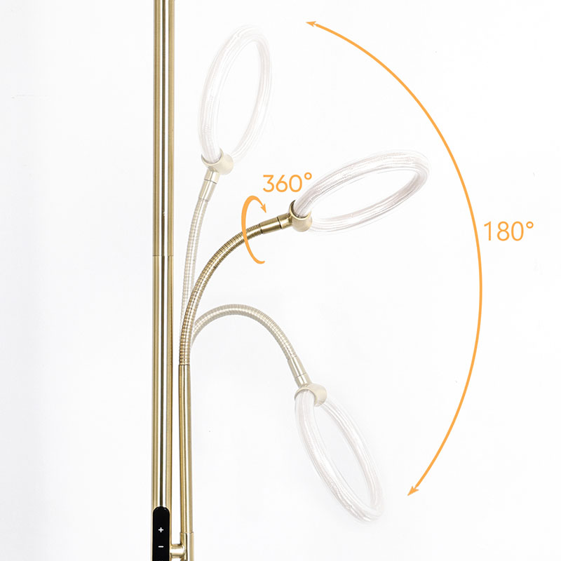 Luxury Gold led stoječa svetilka za dnevno sobo je opremljena z napredno silikonsko cevno 360-stopinjsko tehnologijo osvetlitve, ki oddaja mehko in enakomerno svetlobo ter učinkovito osvetli celoten prostor. Silikonske cevi imajo dobro prožnost in vzdržljivost ter lahko prenesejo različne okoljske pogoje, da zagotovijo stabilnost in varnost
