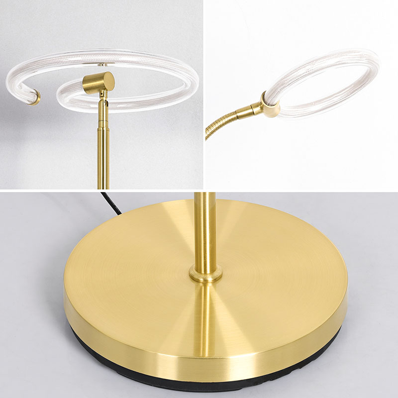 Medenina, satenast nikeljLuksuzna zlata led talna svetilka za dnevno sobo, zasnovana z zlatim kovinskim materialom in silikonsko cevjo za 360-stopinjsko osvetlitev, je postala idealna izbira za sodobna gospodinjstva s svojim edinstvenim šarmom in odlično funkcionalnostjo,
