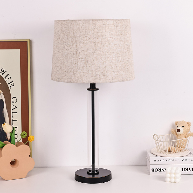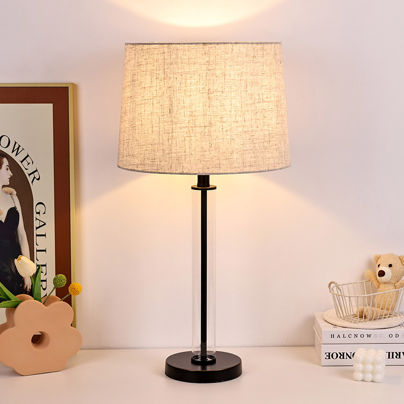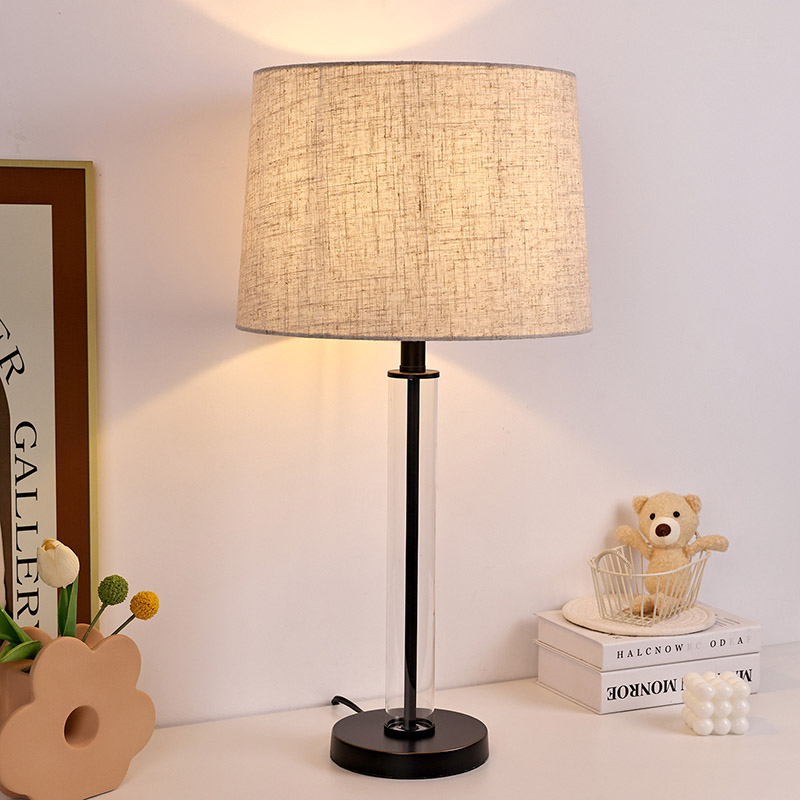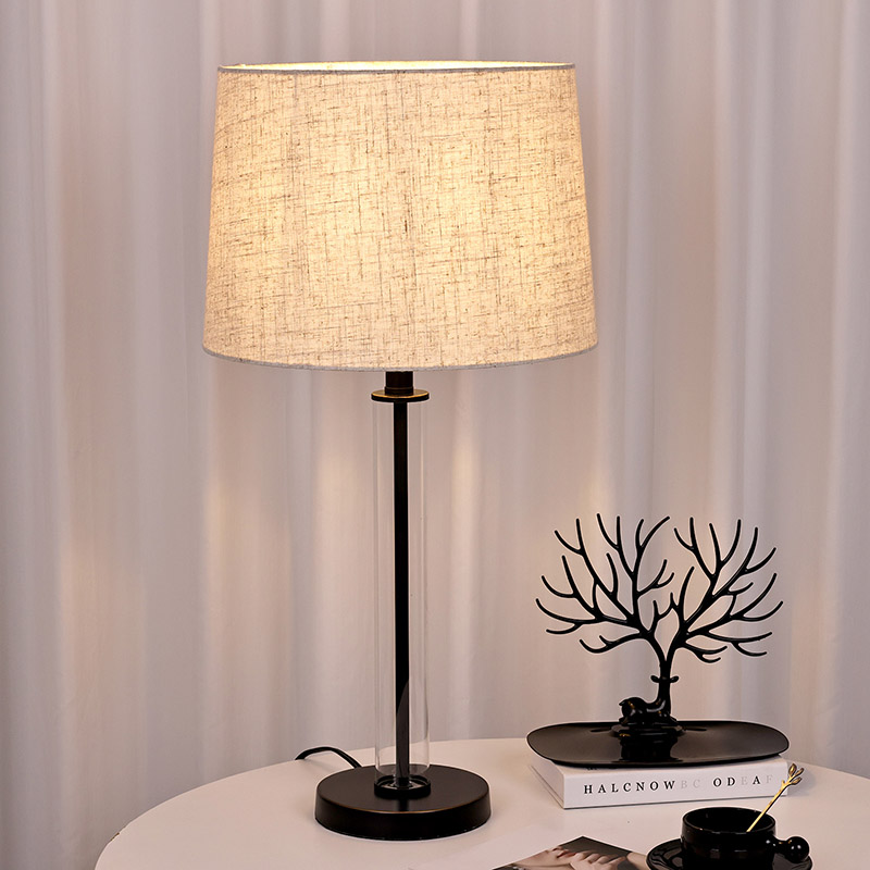 Midcentrury E26 E27 Table Lamp with Fabric Shade has a unique design, using a soft cloth cover and delicate texture to bring you a warm and comfortable touch. Paired with crystal clear glass pillars, it refracts enchanting light and creates a romantic and elegant atmosphere. The sturdy and durable metal base not only provides stable support, but also showcases its high quality and exquisite craftsmanship.