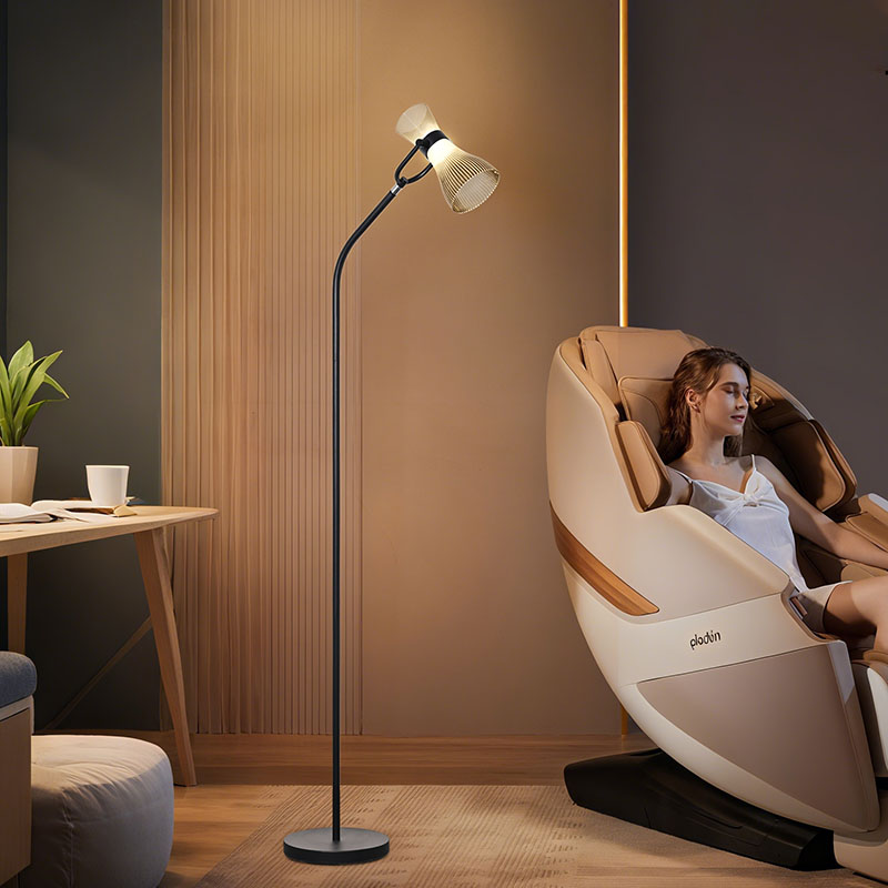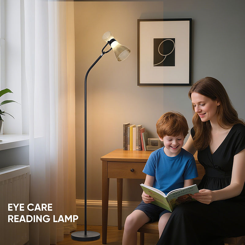 Moderna led stoječa svetilka s steklenim senčnikom je opremljena z naprednimi LED svetlobnimi viri, ki oddajajo mehko in močno svetlobo, učinkovito ščitijo vaše oči ter zmanjšujejo utrujenost in nelagodje, ki ga povzroča dolgotrajna uporaba oči.
