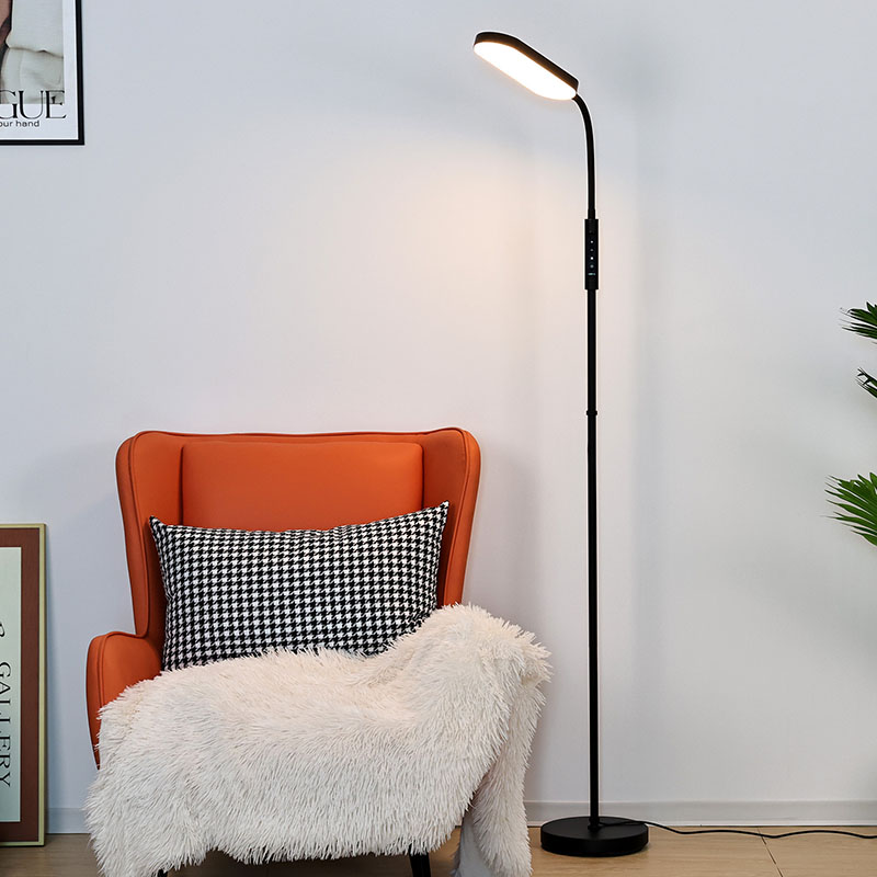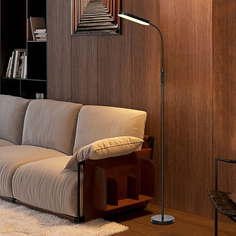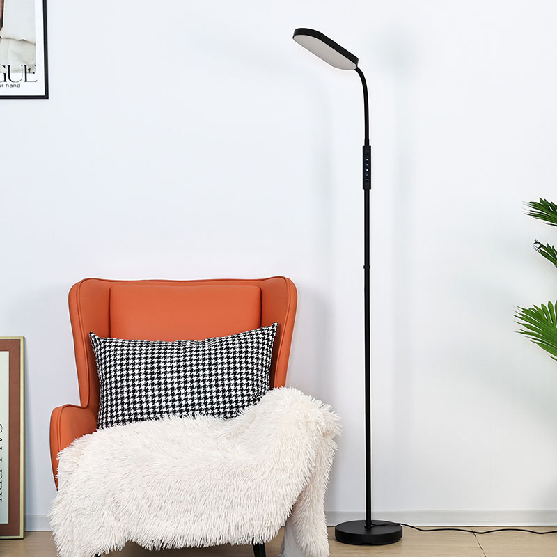 Moderna LED stoječa svetilka za dnevno sobo ima minimalističen koncept oblikovanja s preprosto in linearno splošno obliko. Enopolna zasnova ne le prihrani prostor, ampak daje svetilkam tudi edinstveno estetiko. Črna kovinska palica in podstavek sta bila fino polirana in obdelana, z gladko in občutljivo površino, mehkim sijajem in nizkim, a plemenitim vzdušjem.