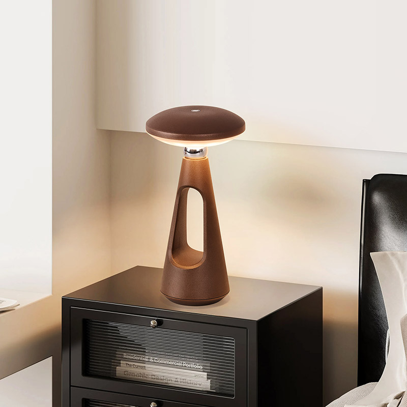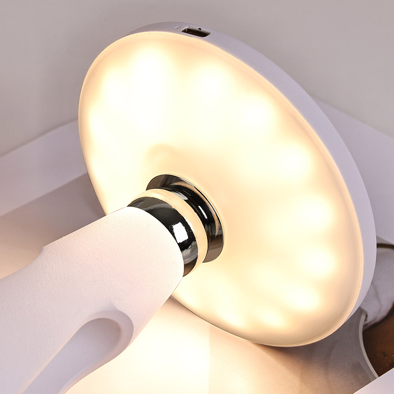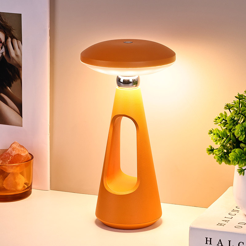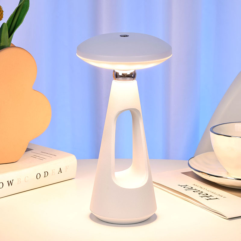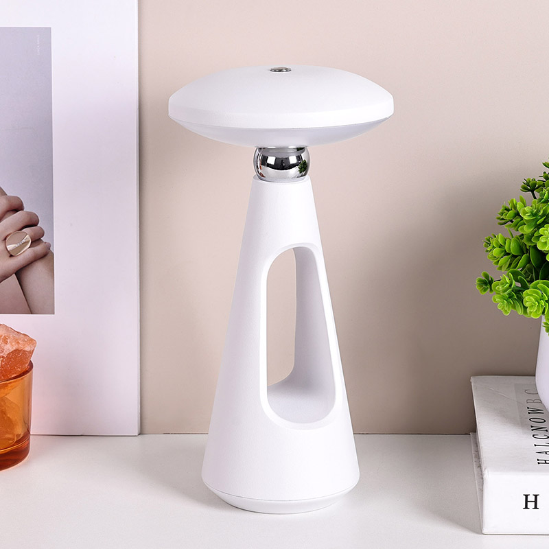 Dotaknite se stikala za zatemnitevGobasta LED namizna svetilka z baterijo za ponovno polnjenje s svojimi preprostimi in gladkimi linijami ter ergonomsko obliko, obliko gobe in igličastega repa ter kovinsko toplo svetlobo LED namizno svetilko ni le praktično orodje za razsvetljavo,