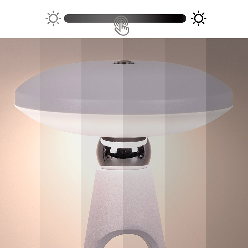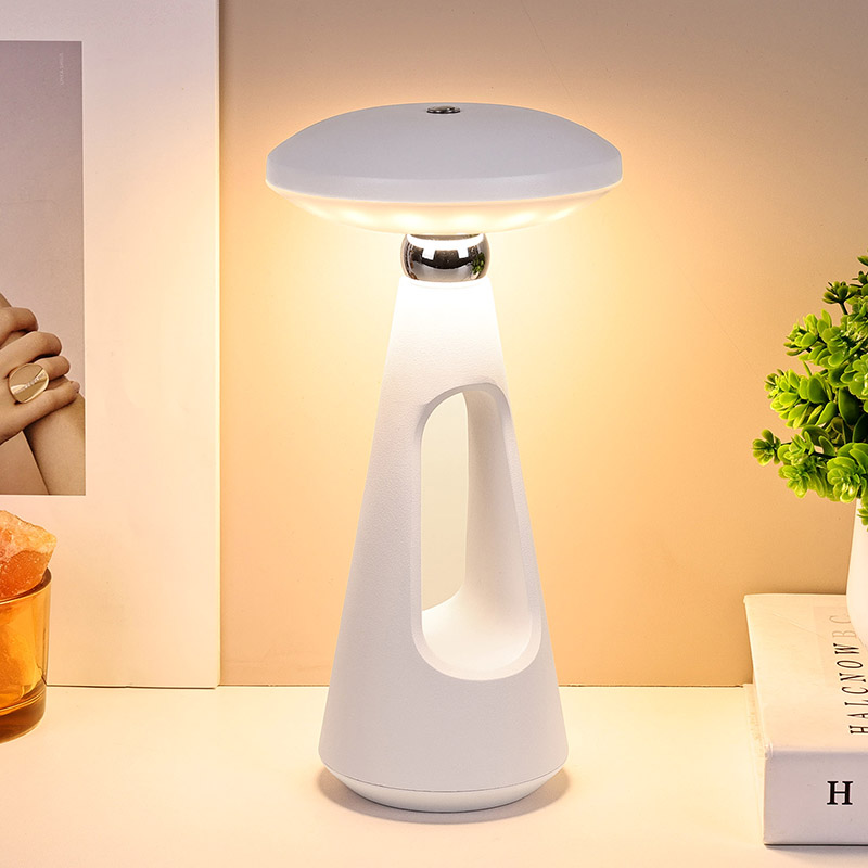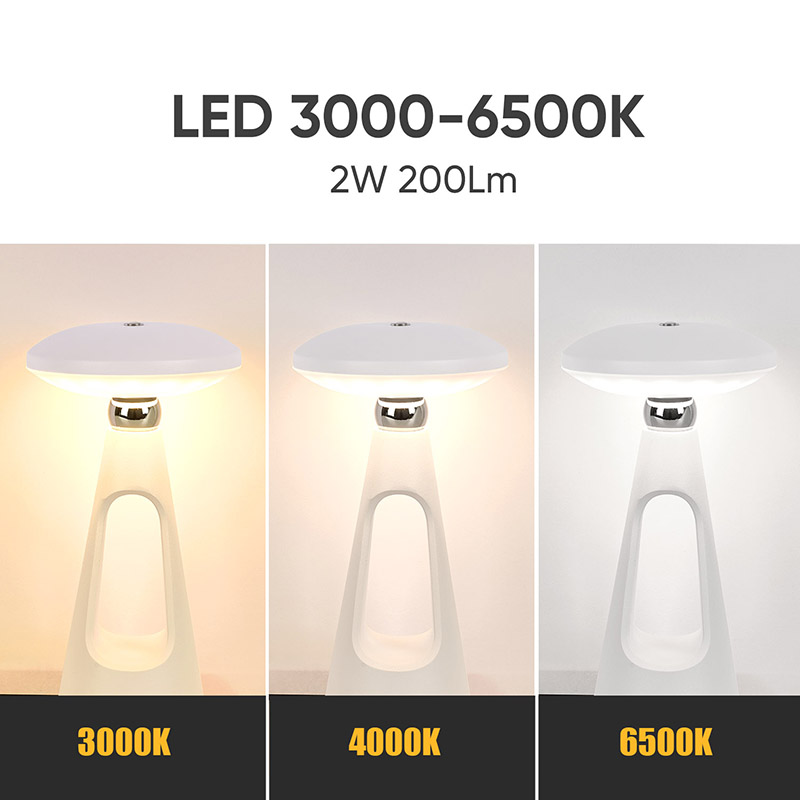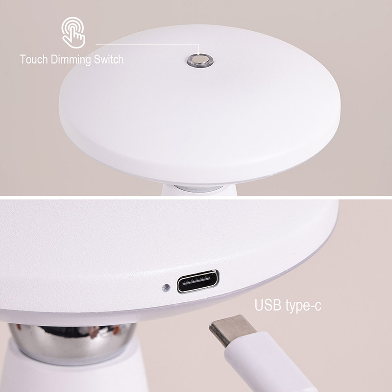 Namizna LED svetilka Mushroom s polnilno baterijo je opremljena z naprednim LED svetlobnim virom, ki oddaja mehko toplo svetlobo in lahko prilagaja intenzivnost svetlobe. Neskončno zatemnitev lahko učinkovito zaščiti vaše oči. S preprostimi operacijami