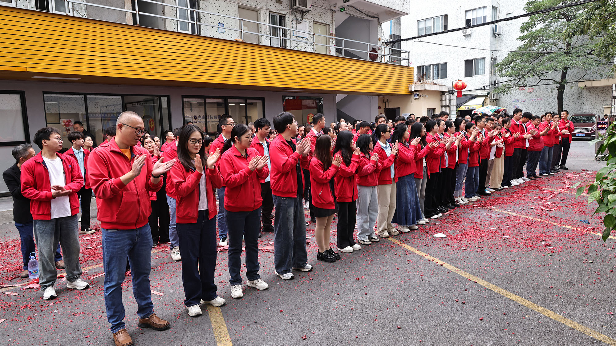 Ob ugodnem dopoldanskem času se je ob svežih in prijetnih zvokih petard uradno začela uvodna slovesnost. Oglušujoče grmenje petard ni le pregnalo dolgotrajnega zimskega mraza, ampak je tudi simboliziralo, da bo podjetje v novem letu cvetelo in uspešno. Rdeči delci papirja, ki so plesali na nebu, so bili kot rože dobrega znamenja, tlakovali so veliko avenijo, ki je vodila v briljantno prihodnost, kar je nakazovalo, da bo Tianhua Optoelectronics leta 2026 zagotovo dosegla visoko zmogljivost in uspevala.