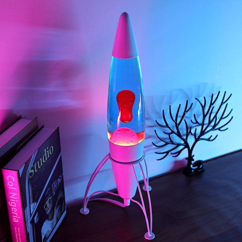 Rdeča svetilka lave z voščeno svetilko v obliki vtičnice ima v notranjosti prozornega stekla in zelenega voska čisto vodo. Po segrevanju vosek plava nepravilno v vodi, kar je zelo cenjeno.