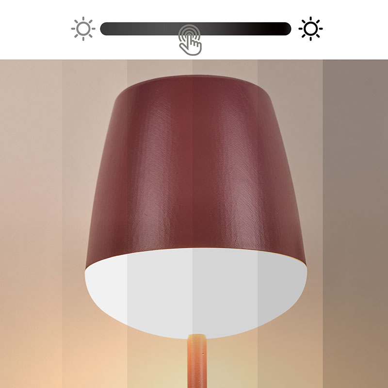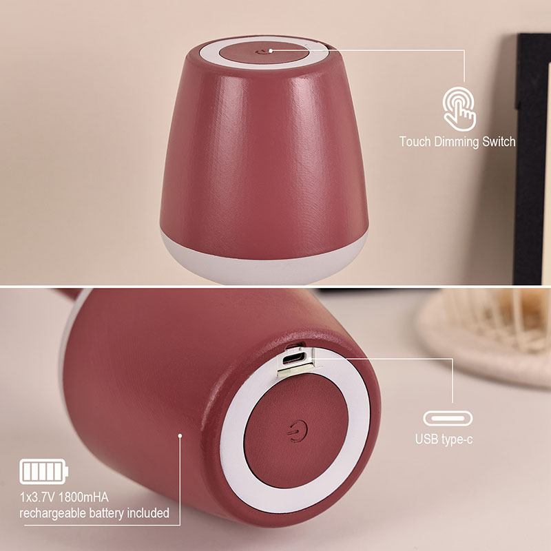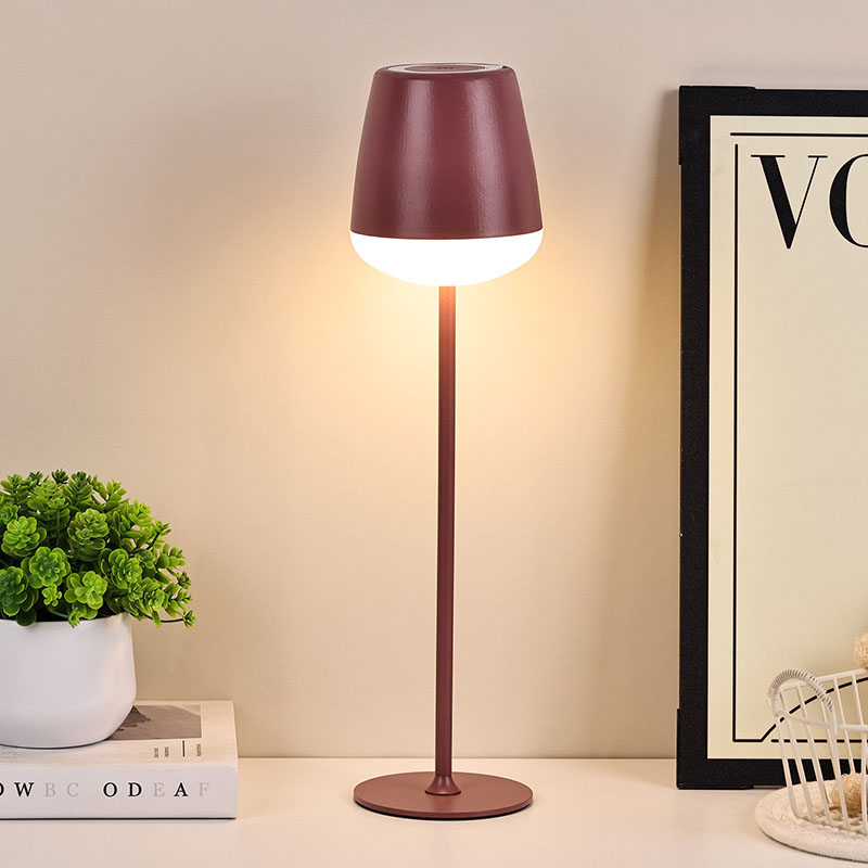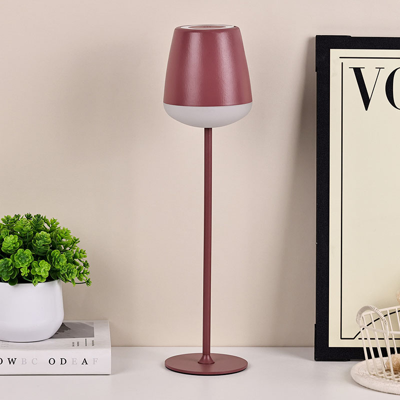 Stikalo za zatemnitev na dotikDizajn senčnika, ki spominja na visok kozarec za vino, ima gladke in umetniške linije, pri čemer vsaka podrobnost odraža edinstven okus. Senčnik se rahlo razširi navzven in spominja na rob kozarca za vino, kar je hkrati estetsko in praktično. Namizna svetilka s steklenim senčnikom iz rdečega vina lahko enakomerno in nežno razširi svetlobo,