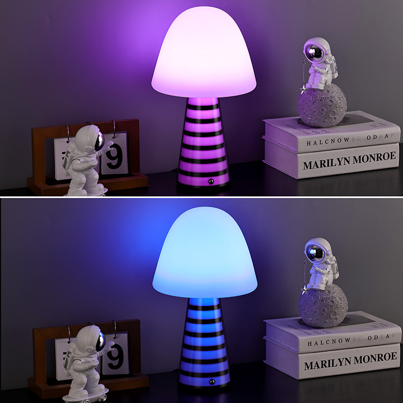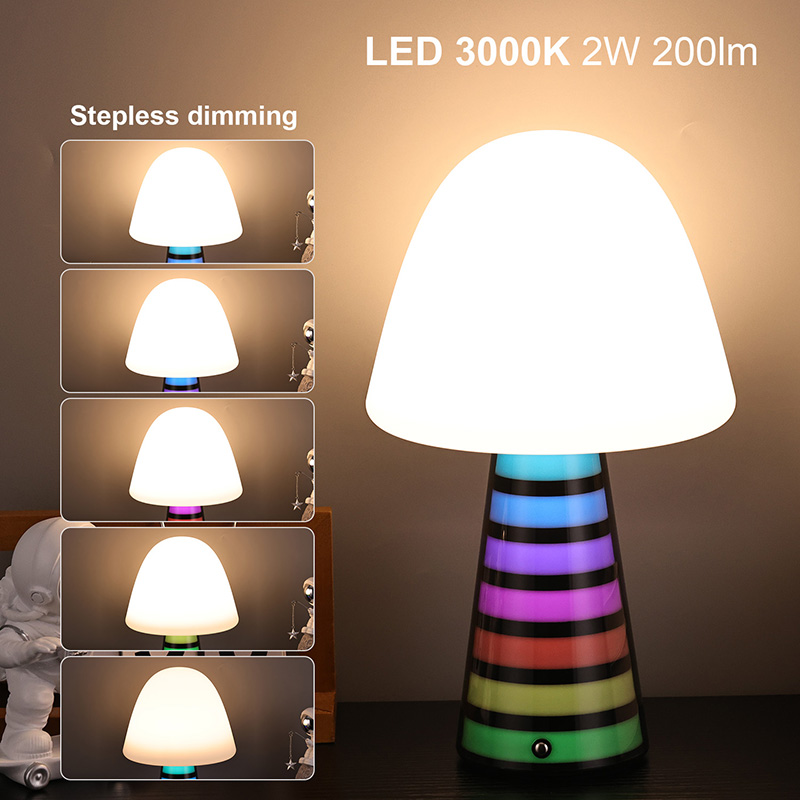 Digi RGB nočna lučkaNamizna svetilka Dreamy Mushroom, zasnovana posebej za otroke, deluje z varno napetostjo, brez utripanja in nizko porabo energije ter premišljeno ščiti zdravje otrokovega vida. Polprozorna zasnova gob je čudovita