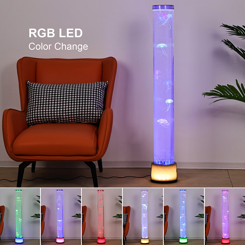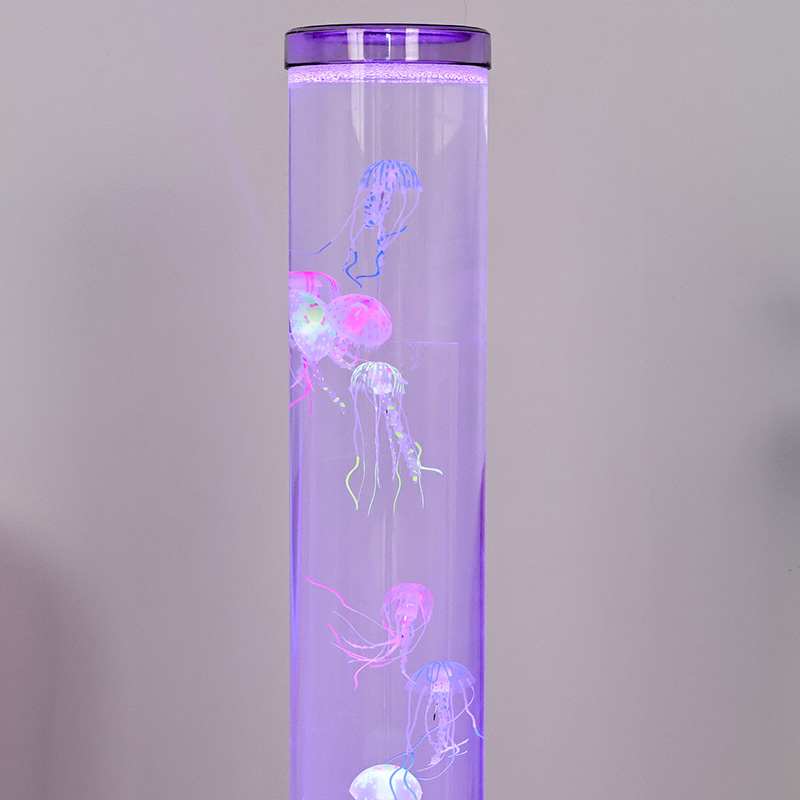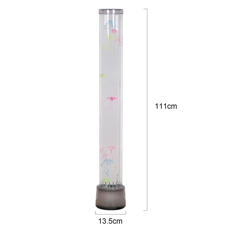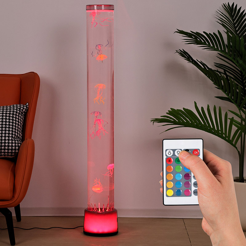 39,5*39,5*113 CMRGB talna svetilka meduze je kreativen kos za dekoracijo doma, ki združuje sodobno tehnologijo z naravno estetiko. S svojimi zasanjanimi svetlobnimi in senčnimi učinki ter realističnim dizajnom meduze notranjim prostorom dodaja skrivnosten in miren oceanski ambient. Celoten dizajn je izdelan iz visoko prosojnega akrila, ki ima vitko in elegantno obliko, ki spominja na miniaturni podvodni svet in vas potopi, kot da bi bili globoko pod morjem.