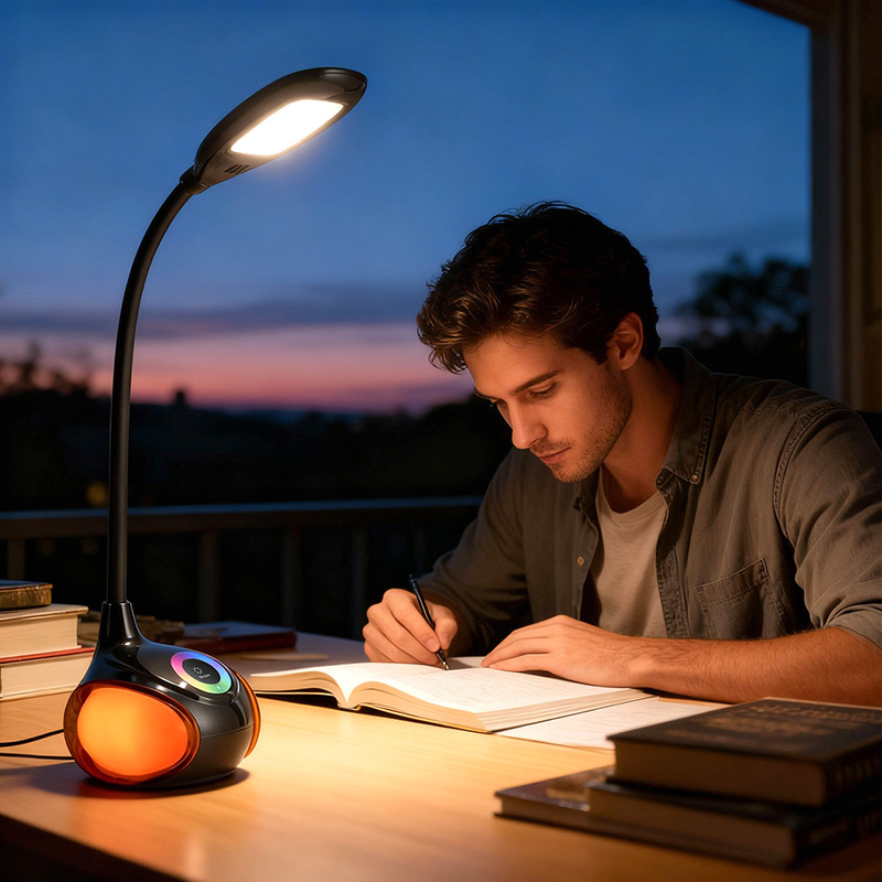 Poleg tega lahko namizna svetilka osvetli namizno svetilko tudi 360 stopinj brez mrtvih kotov