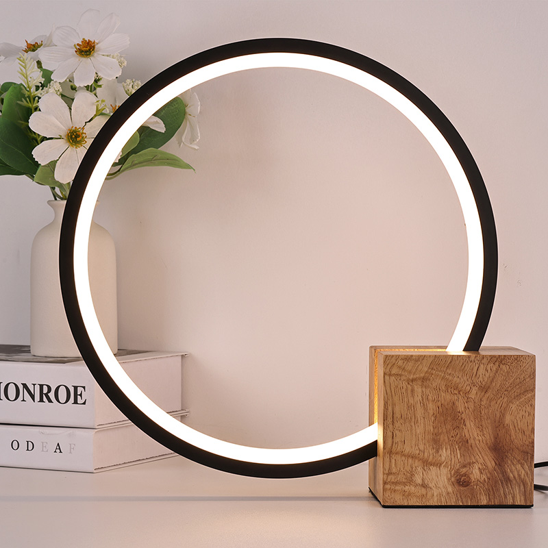 Rotundity LED namizna svetilka z lesenim podstavkom za dekoracijo doma je preprosta in razkošna, z nepravilno zaobljeno obliko. LED namizna svetilka za ohišje doma je sestavljena iz pol LED luči in pol kovinskega nosilca. LED namizna svetilka za dekoracijo doma je zelo primerna za postavitev na pult ali posteljo v nakupovalnem centru ali hotelu, saj je dizajn zelo razkošen in zelo primeren za dekoracijo