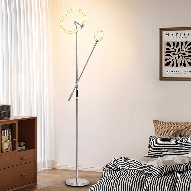 Zasnova okoljske razsvetljave ne le daje svetilkam edinstven vizualni učinek, ampak tudi učinkovito razprši svetlobo, zaradi česar je svetloba mehkejša in bolj enotna. Držalo svetilke in podstavek te talne svetilke sta bila fino polirana in obdelana, z gladko in občutljivo površino ter prijetnim otipom za roko,