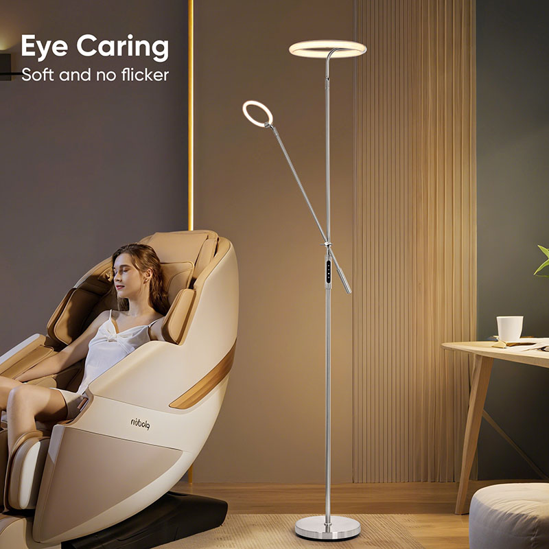 Za izpolnitev vaših potreb po razsvetljavi v različnih scenarijih sta podstavek in podnožje te talne svetilke opremljena s 3 stopnjami funkcije prilagajanja jakosti svetlobe. S preprostimi operacijami lahko poljubno prilagodite intenzivnost osvetlitve glede na različne potrebe in prizore. Ne glede na to, ali potrebujete močno svetlobo za branje knjig ali želite mehko osvetlitev za ustvarjanje romantičnega vzdušja, lahko podstavek in podstavek te talne svetilke zlahka izpolnita vaše zahteve.