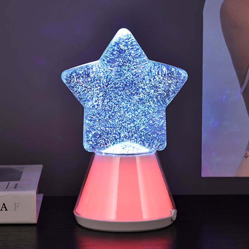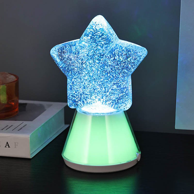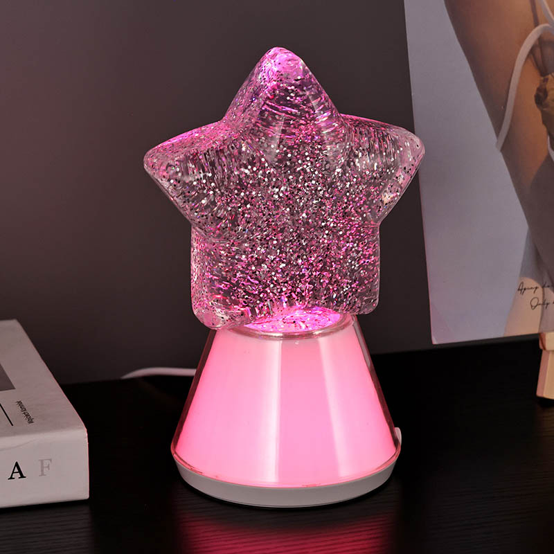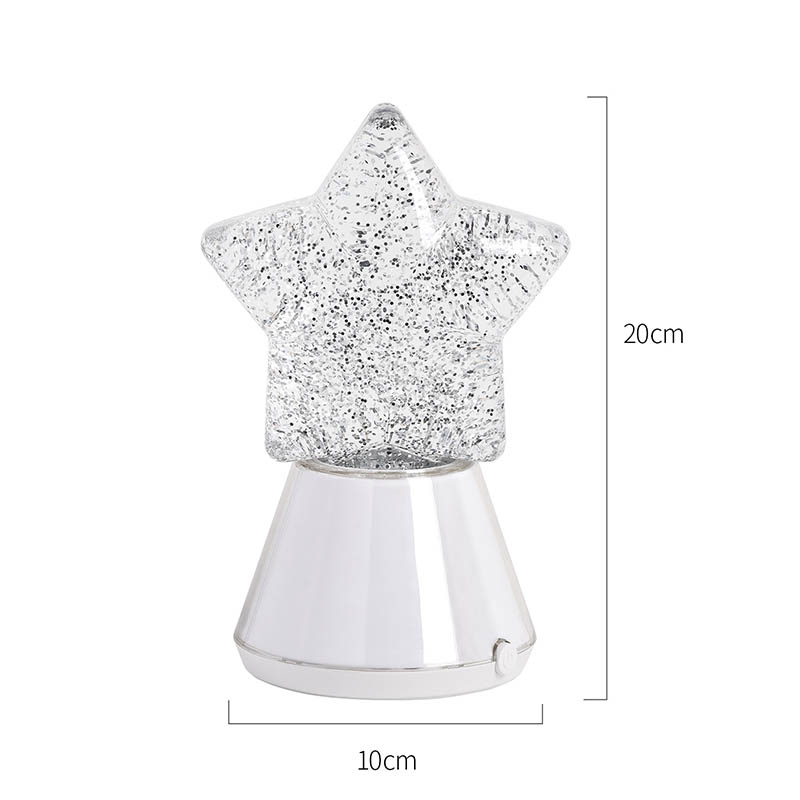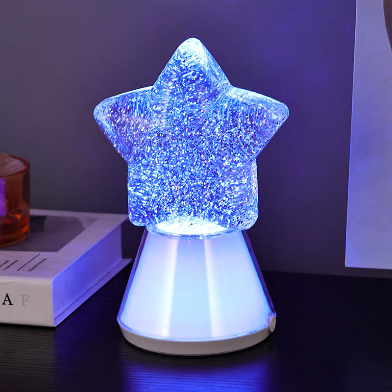 Čarobnost noči z našo Starry Night Decorative Larm ima osupljiv zvezdniški dizajn, ki zajame bistvo nebesne lepote. Ta svetilka, izdelana iz kakovostnih materialov, se ponaša z osnovo iz prozorne plastike, ki spreminja barvo v sinhronizaciji z notranjimi LED lučmi RGB. Zvezda je napolnjena z bleščečimi delci bleščic, suspendiranih v tekočini, kar ustvarja privlačen vizualni učinek, ko svetilka sveti. Ko barve krožijo skozi spekter živahnih odtenkov, bleščice plešejo znotraj in vlivajo kaleidoskop utripajočih luči, ki vam bodo pustili črkovanje.