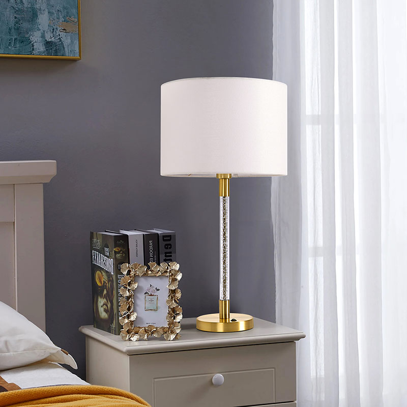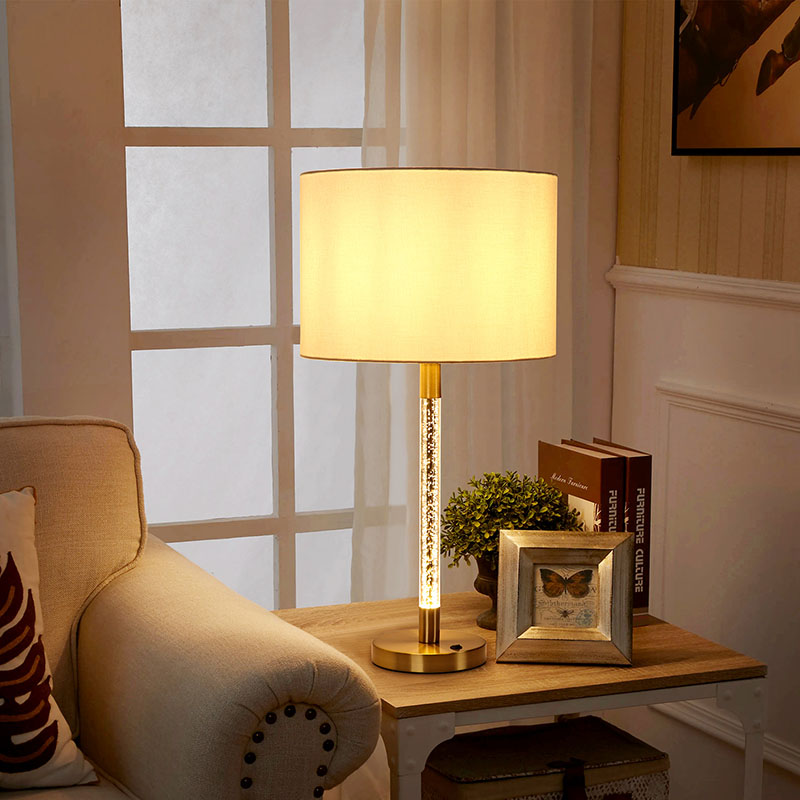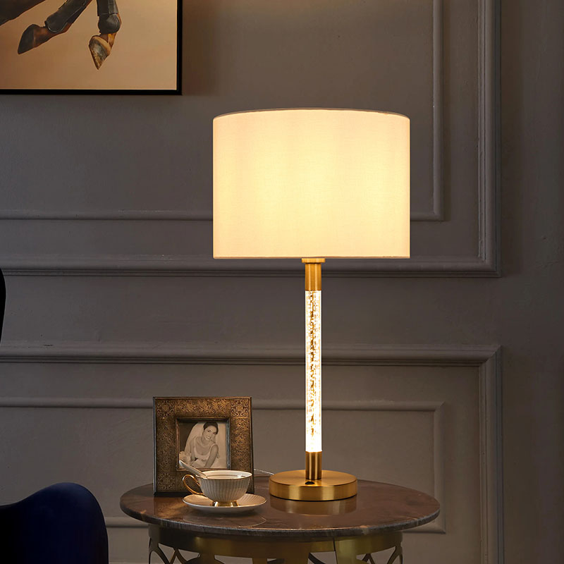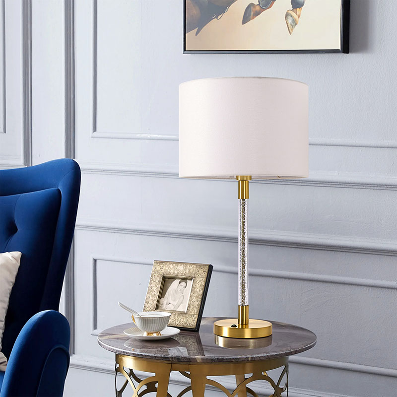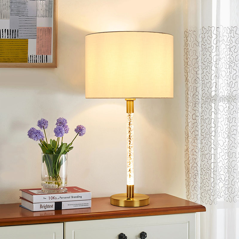 Tradicionalna namizna svetilka s steklenim stebrom ima edinstveno zasnovo, prevleko iz mehke tkanine in nežno teksturo, ki vam daje topel in udoben dotik. V kombinaciji s stebri iz kristalno čistega stekla lomi očarljivo svetlobo in ustvarja romantično in elegantno vzdušje. Čvrsto in vzdržljivo kovinsko podnožje ne zagotavlja le stabilne podpore, ampak tudi prikazuje visoko kakovost in izvrstno izdelavo.