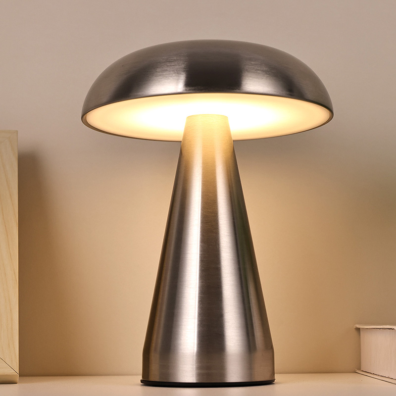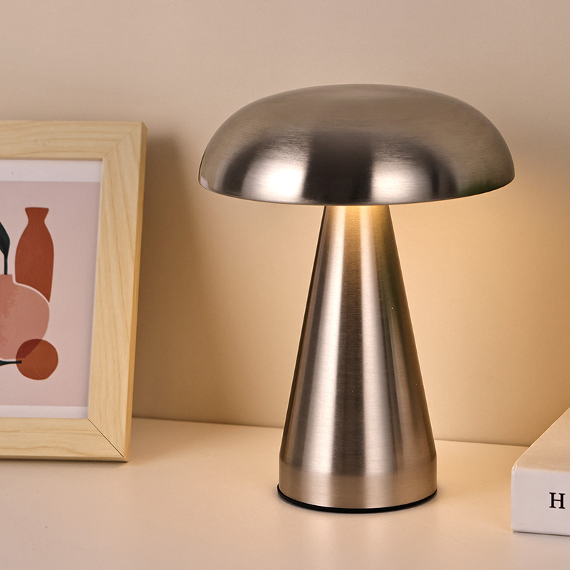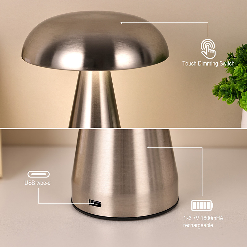 Stikalo za zatemnitev na dotikCelotna kovinska namizna led svetilka z gobastim senčnikom je izdelana iz vseh kovinskih materialov in ima zelo poseben dizajn. Posnema obliko gobe in ima nastavljive jakosti luči, ki so vrezane v notranjost gobe. Celotna kovinska Led namizna svetilka z gobastim senčnikom je primerna za postavitev v otroške sobe v pogovornem okolju. Celotna kovinska namizna led svetilka z gobastim senčnikom dobro dopolnjuje otroški svet in zagotavlja toplo osvetlitev prostora. Za enostavno mobilnost ima namizna svetilka vgrajeno tudi polnilno baterijo, ki jo lahko uporabljate kadarkoli in kjerkoli.