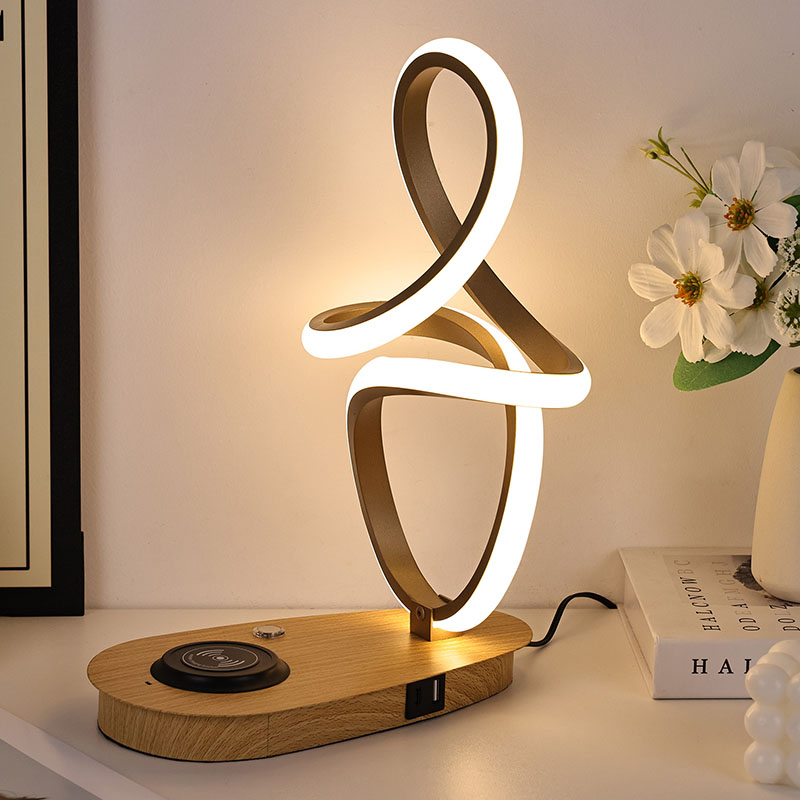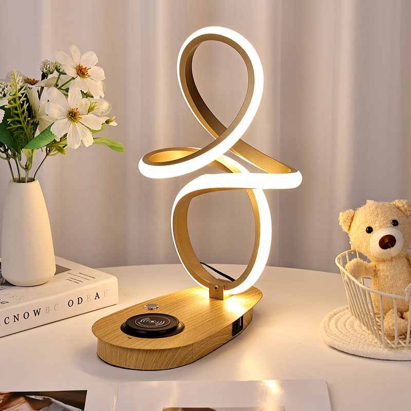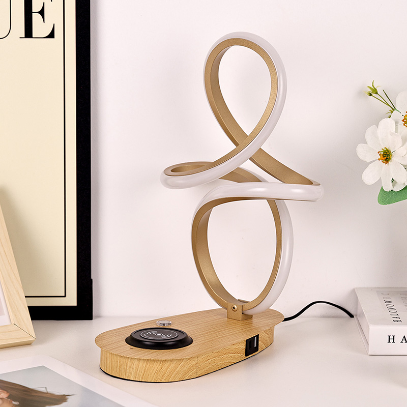 Brezžični polnilnik LED namizna svetilka s senčnikom Fried Dough Twists ima brezžični polnilnik za telefon in polnilnik z vrati USB